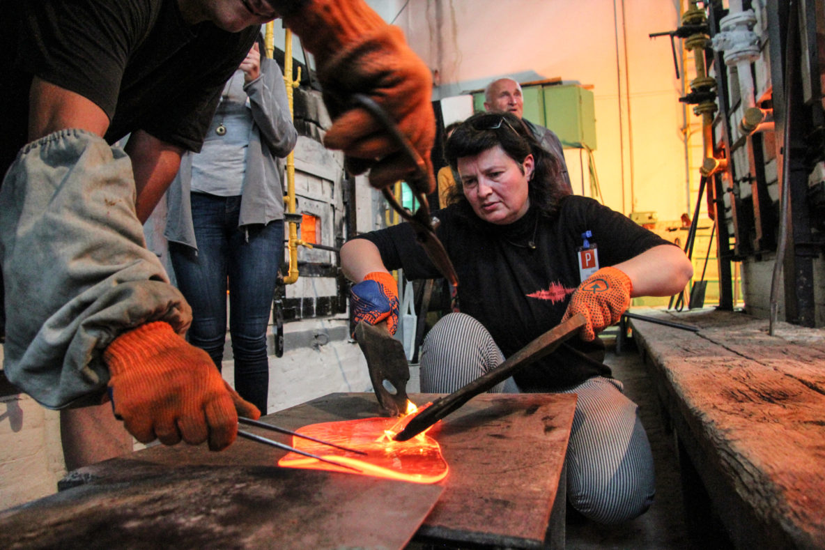 Pats didžiausias iššūkis iš įvairių kraštų atvykusiems kūrėjams yra neįprastos jiems darbo prie krosnies sąlygos, kurios kiekvienoje studijoje – savitos, skiriasi stiklo kokybė bei techniniai parametrai, įranga, įrankiai, ne mažiau svarbi ir meistrų komanda. Būna simpoziumų, kad su meistrais, kalbančiais, pavyzdžiui, tik sava kalba, tenka šnekėtis vien stiklo „leksika“, pasitelkiant į pagalbą gestus, įvairius judesius, šūksnius ar baksnojant į atsineštus eskizus.