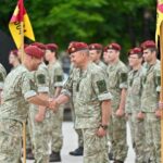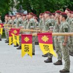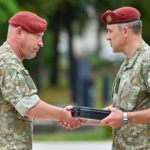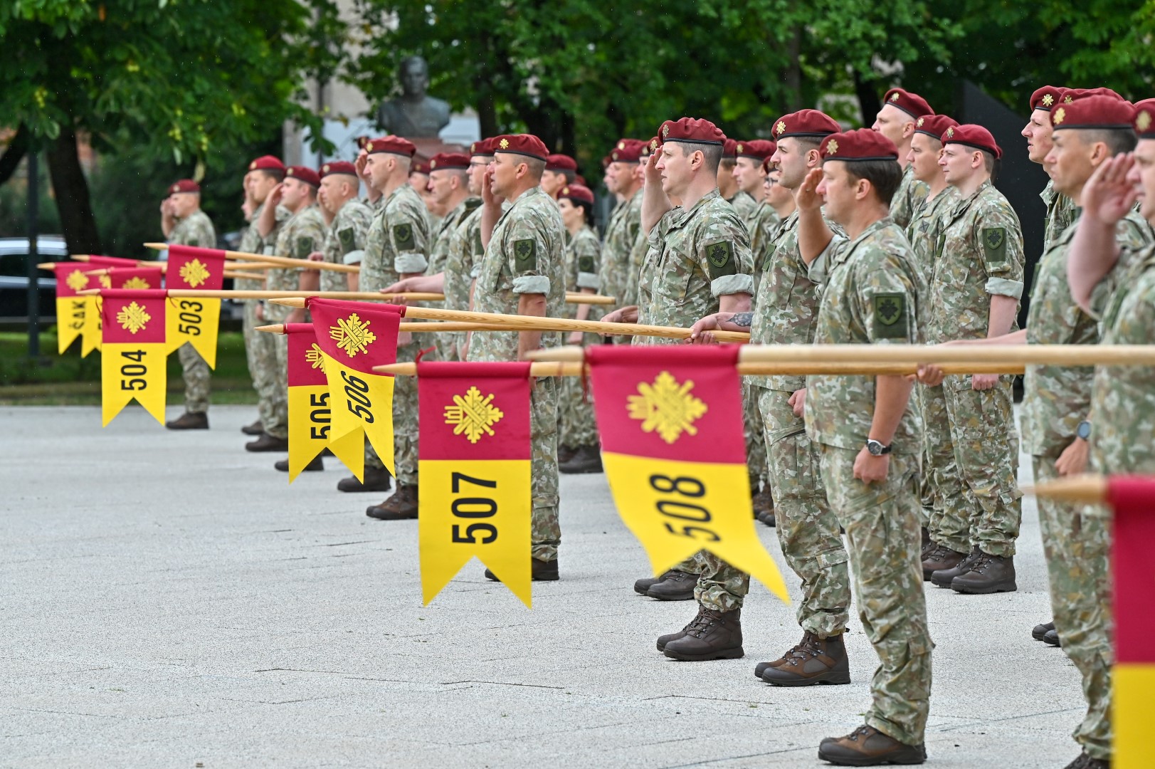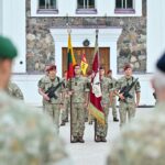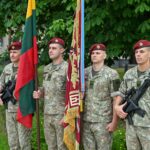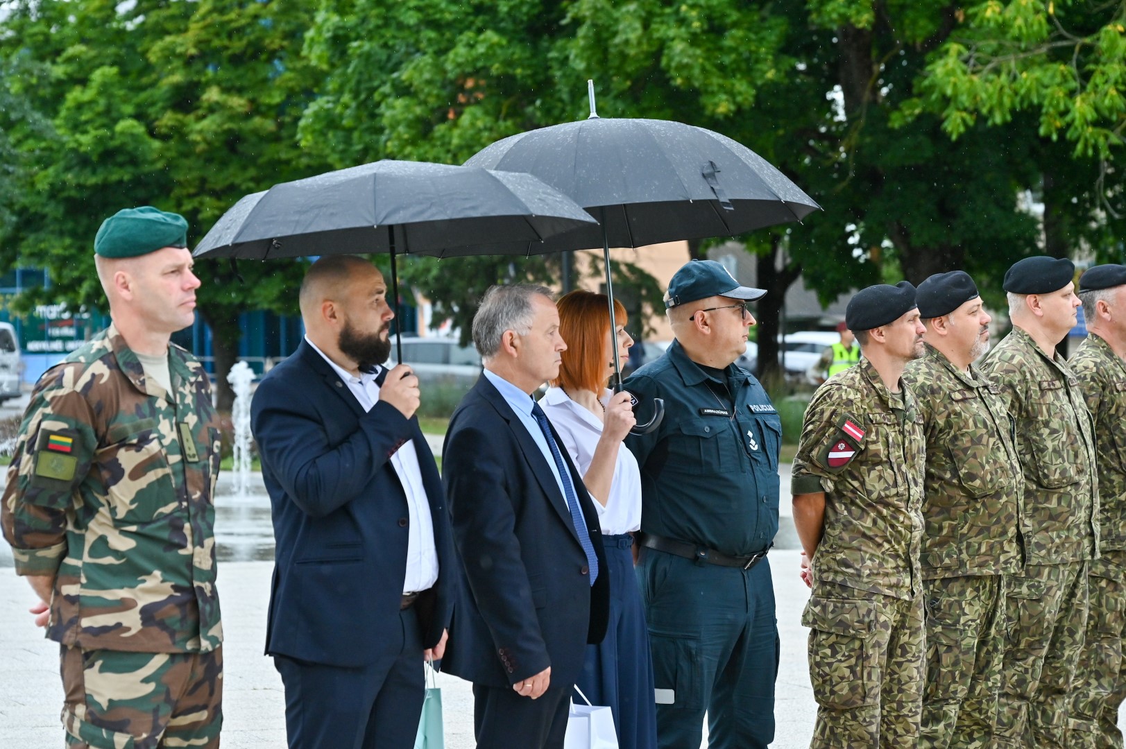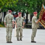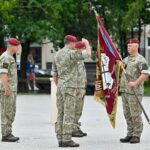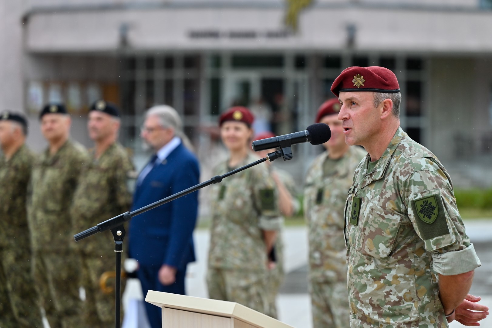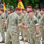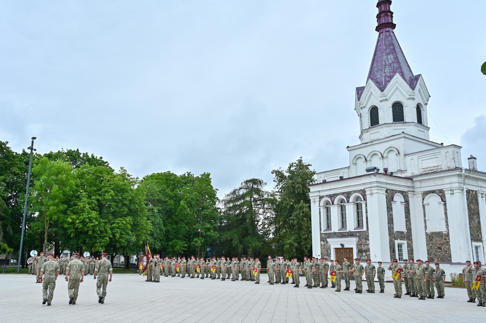 Krašto apsaugos savanorių pajėgų Vyčio apygardos 5-osios rinktinės vadas plk. ltn. Mindaugas Rekašius Rinktinės vėliavą perdavė įpėdiniui.