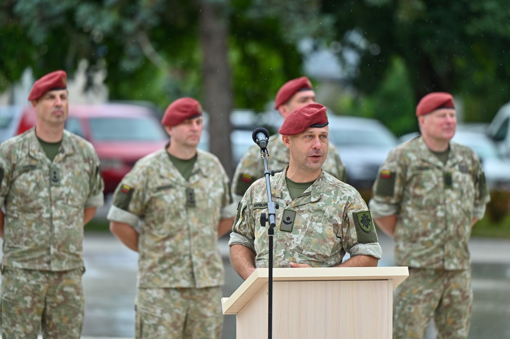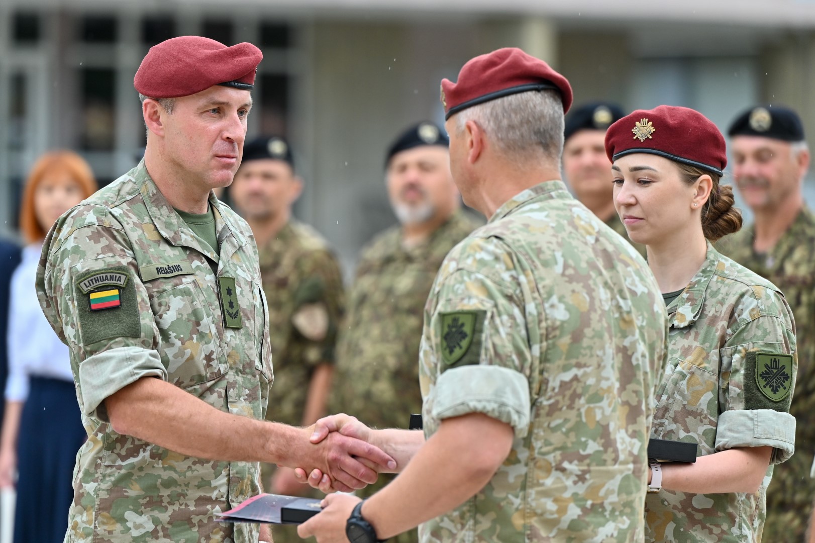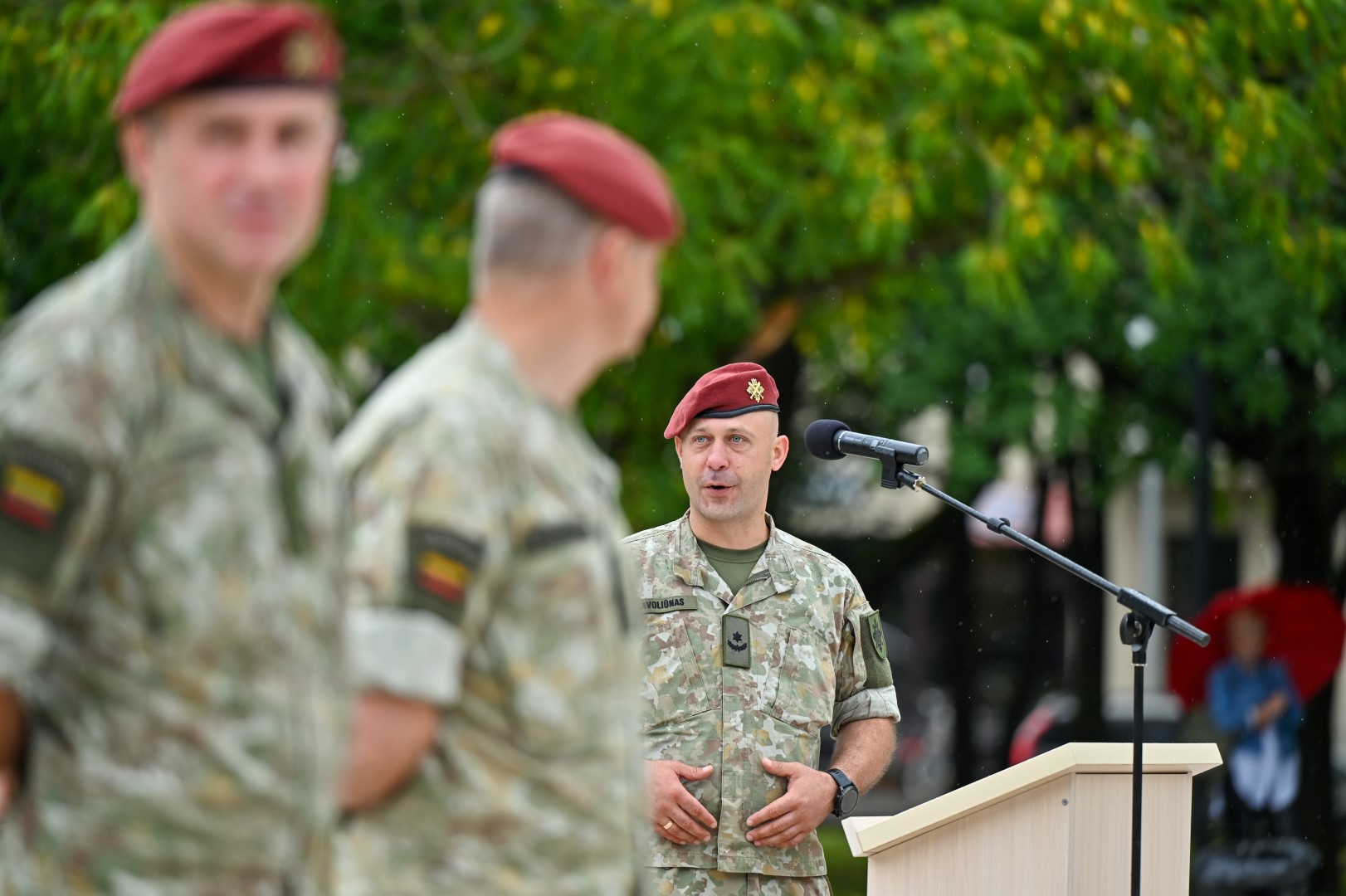 Atsisveikinęs rinktinės vadas plk. ltn. M. Rekašius tarnybą tęs kitame Lietuvos kariuomenės dalinyje.