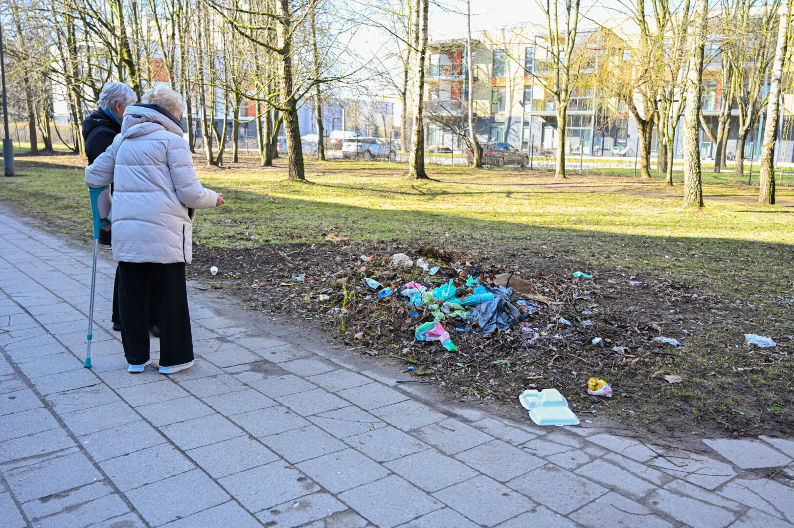 „Įėjimas į mūsų daugiabučio laiptines – kitoje namo pusėje, be to, prie namo stovi atliekų konteineriai, tad gyventojai šiukšles krauna į juos“, – tvirtino bendrijos pirmininkė.