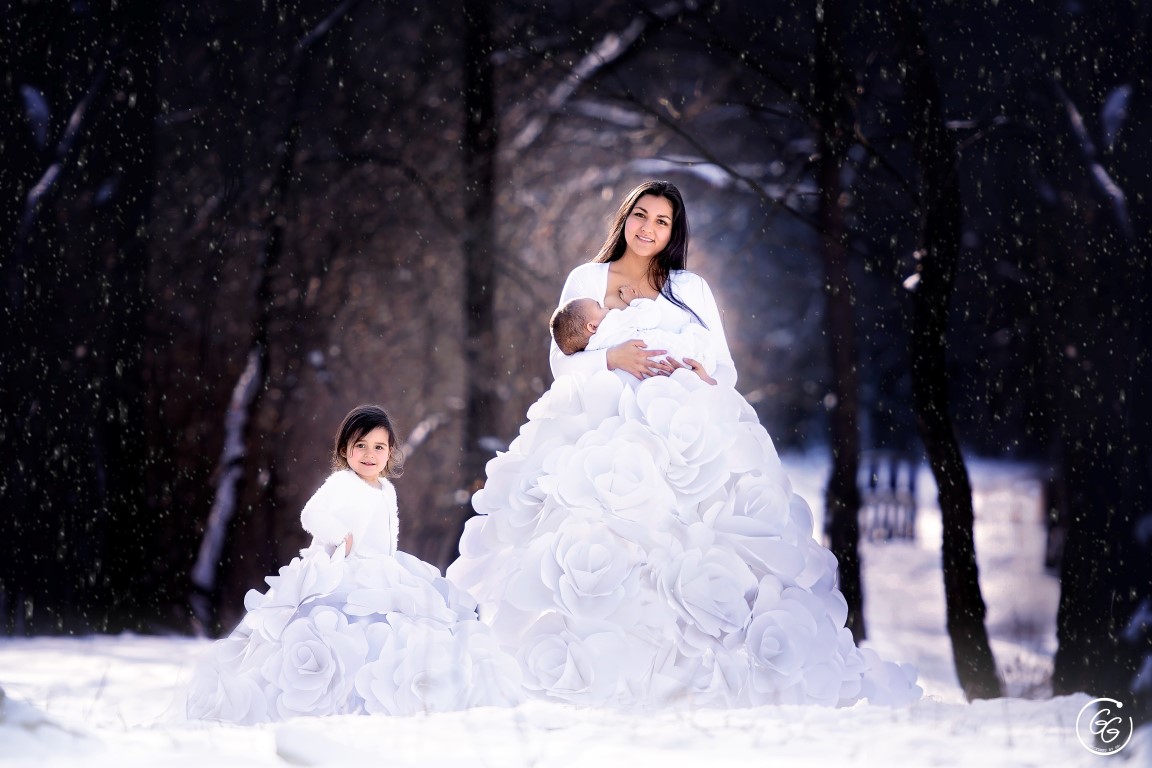 „Visada įsivaizdavau, kaip nuostabiai gėlėtos popierinės suknelės atrodytų žiemą, kai lauke daug sniego. Čikagoje žiemos nenuspėjamos, kartais prisninga, kartais ne. Šią žiemą pirmojo sniego laukiau tiesiog išsižiojusi ir vos pasnigus lėkėme fotografuotis. Modeliukus sušaldėme, bet ko dėl gražių nuotraukų nepadarysi“, – šypsosi G. Gomes.