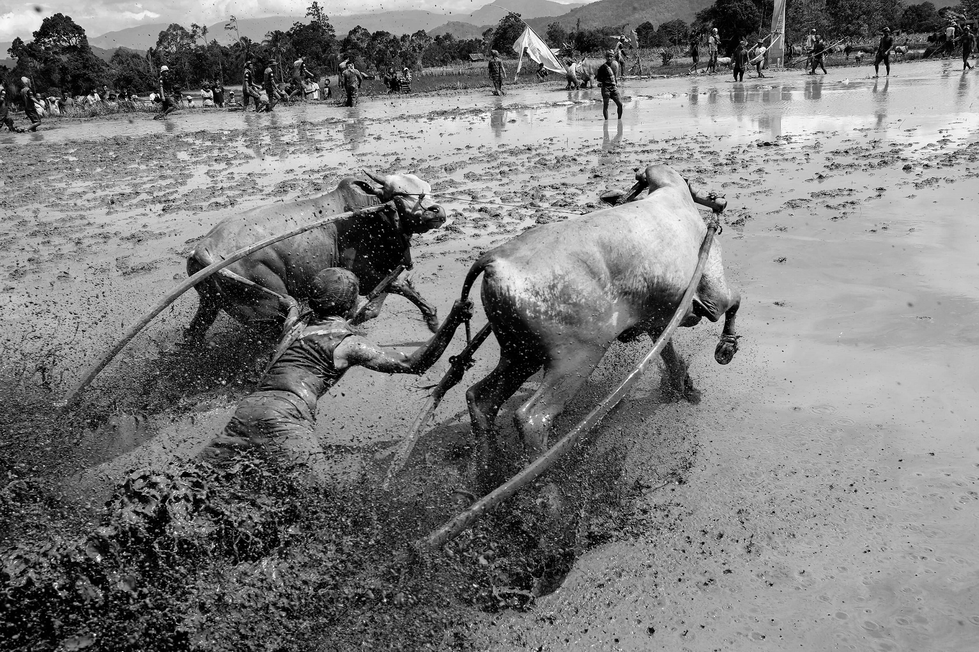Po kvapą gniaužiančio renginio pagrindinės dalyvės vis dar būna apimtos panikos. Tačiau kaimo vyrai bando kaip įmanydami geriau jomis pasirūpinti. Po varžybų plaudami nuo savęs purvo sluoksnius jie tuo pat metu prausia ir karves.
