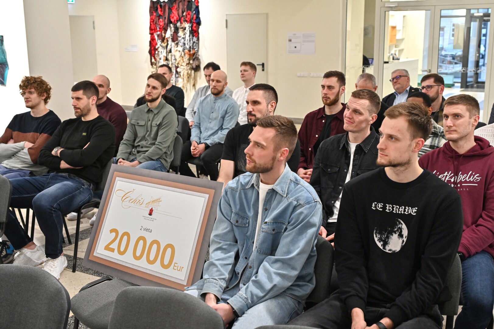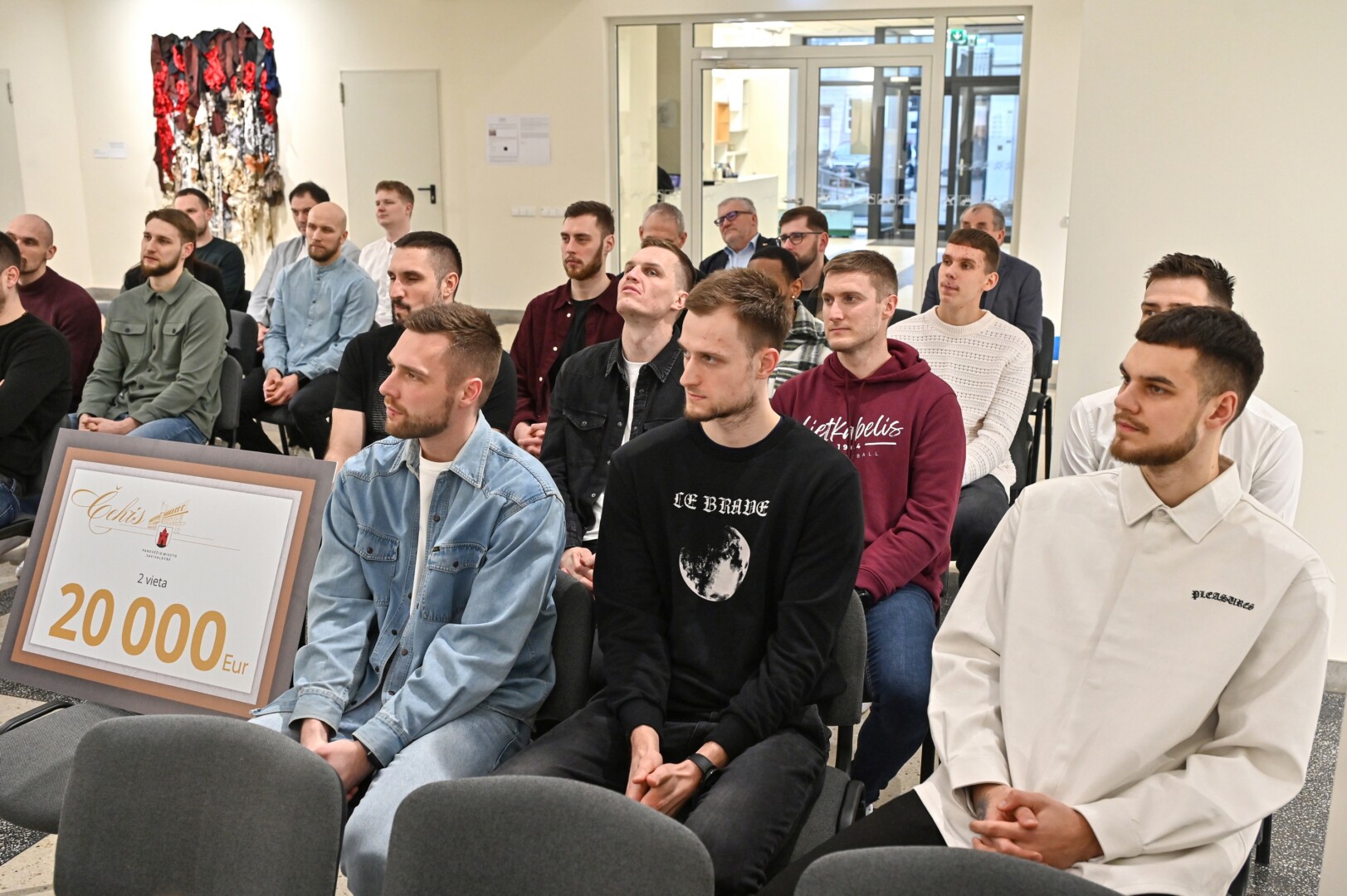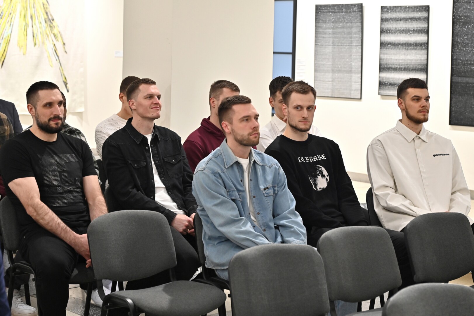 Panevėžio dailės galerijoje pasveikinti „7bet-Lietkabelio“ klubo krepšininkai, treneriai bei vadovai, kuriems padėkota už Citadele Karaliaus Mindaugo taurės turnyre iškovotą antrąją vietą.