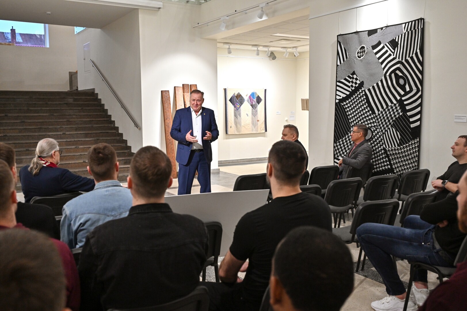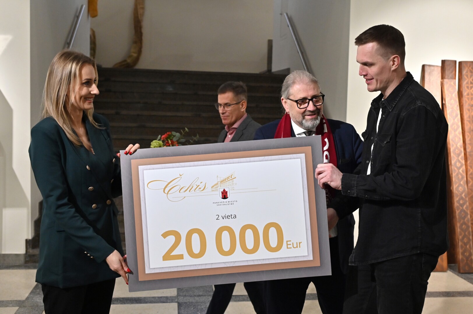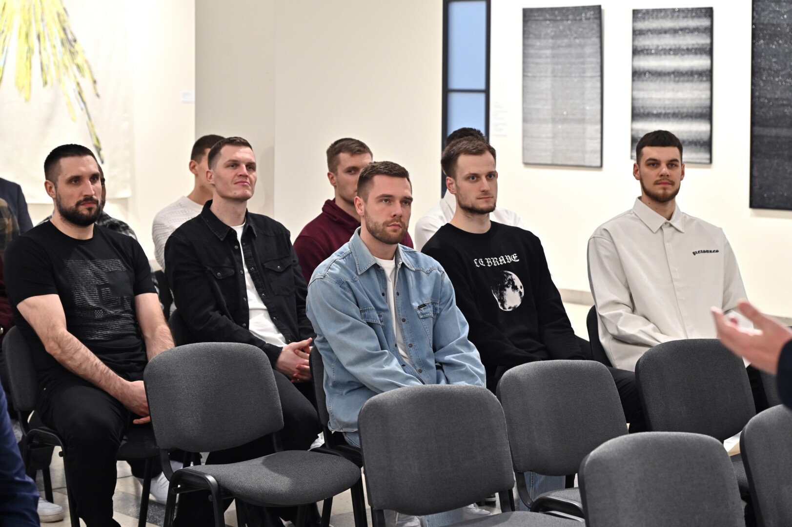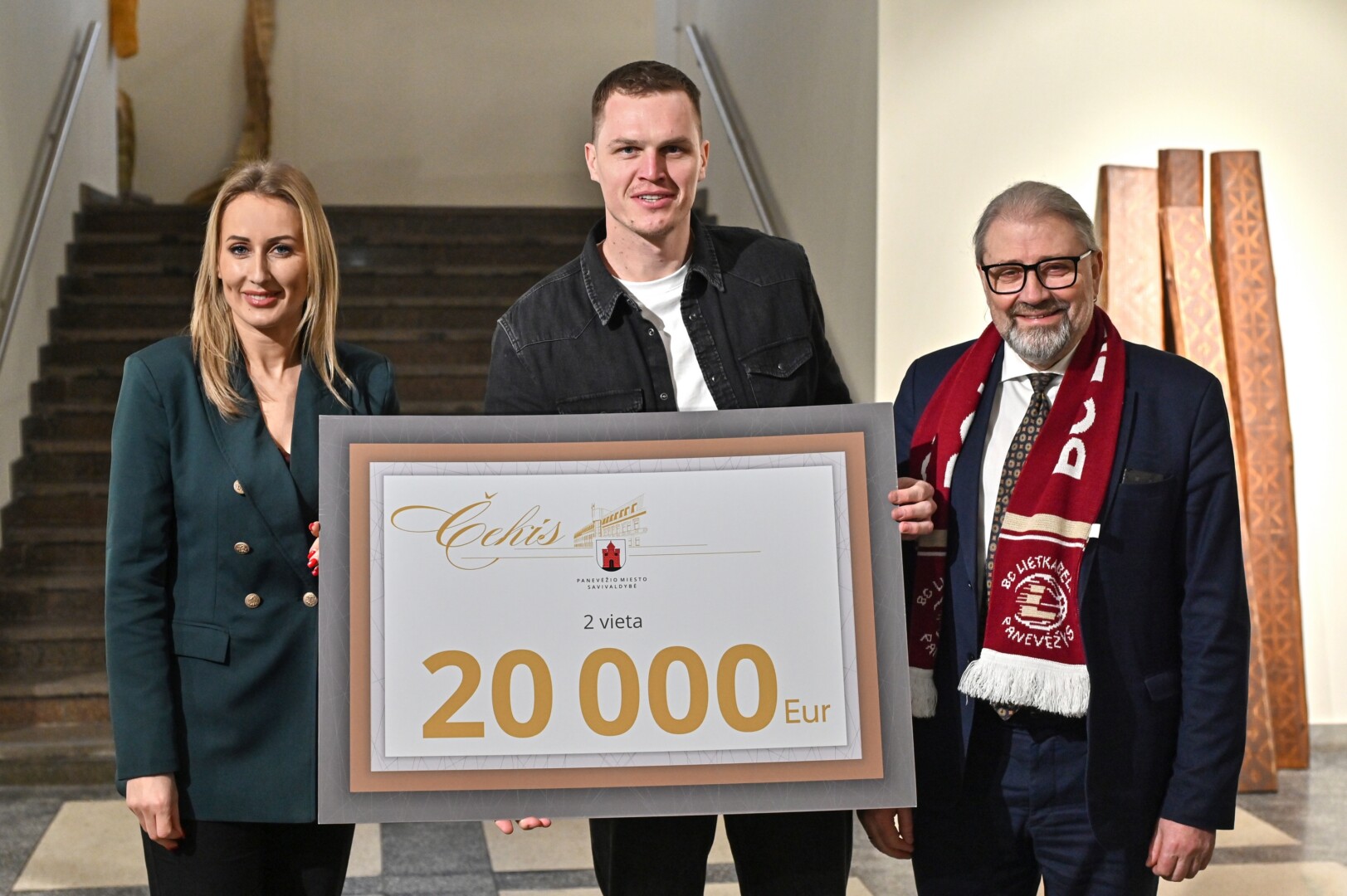 Panevėžio dailės galerijoje pasveikinti „7bet-Lietkabelio“ klubo krepšininkai, treneriai bei vadovai, kuriems padėkota už Citadele Karaliaus Mindaugo taurės turnyre iškovotą antrąją vietą.