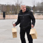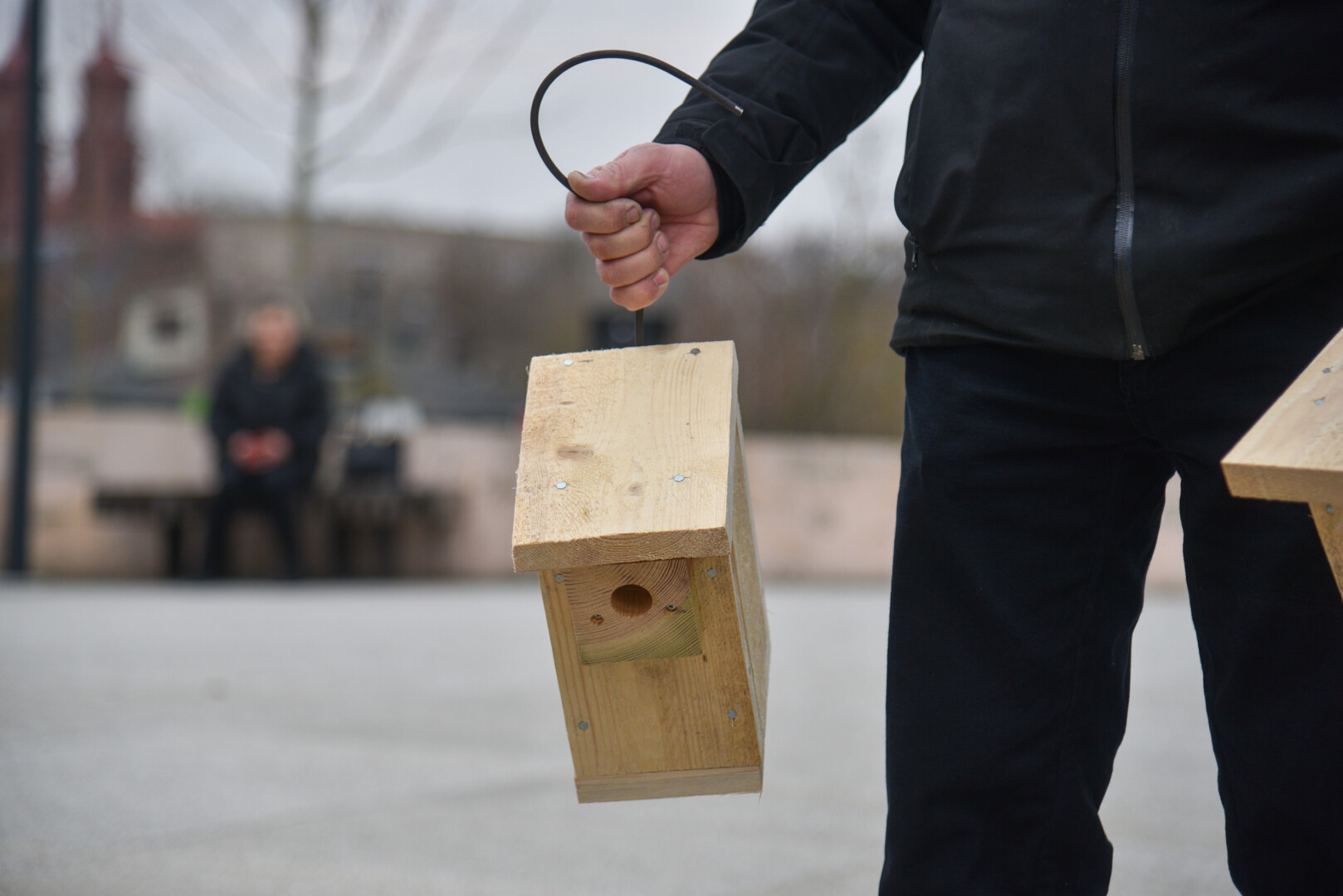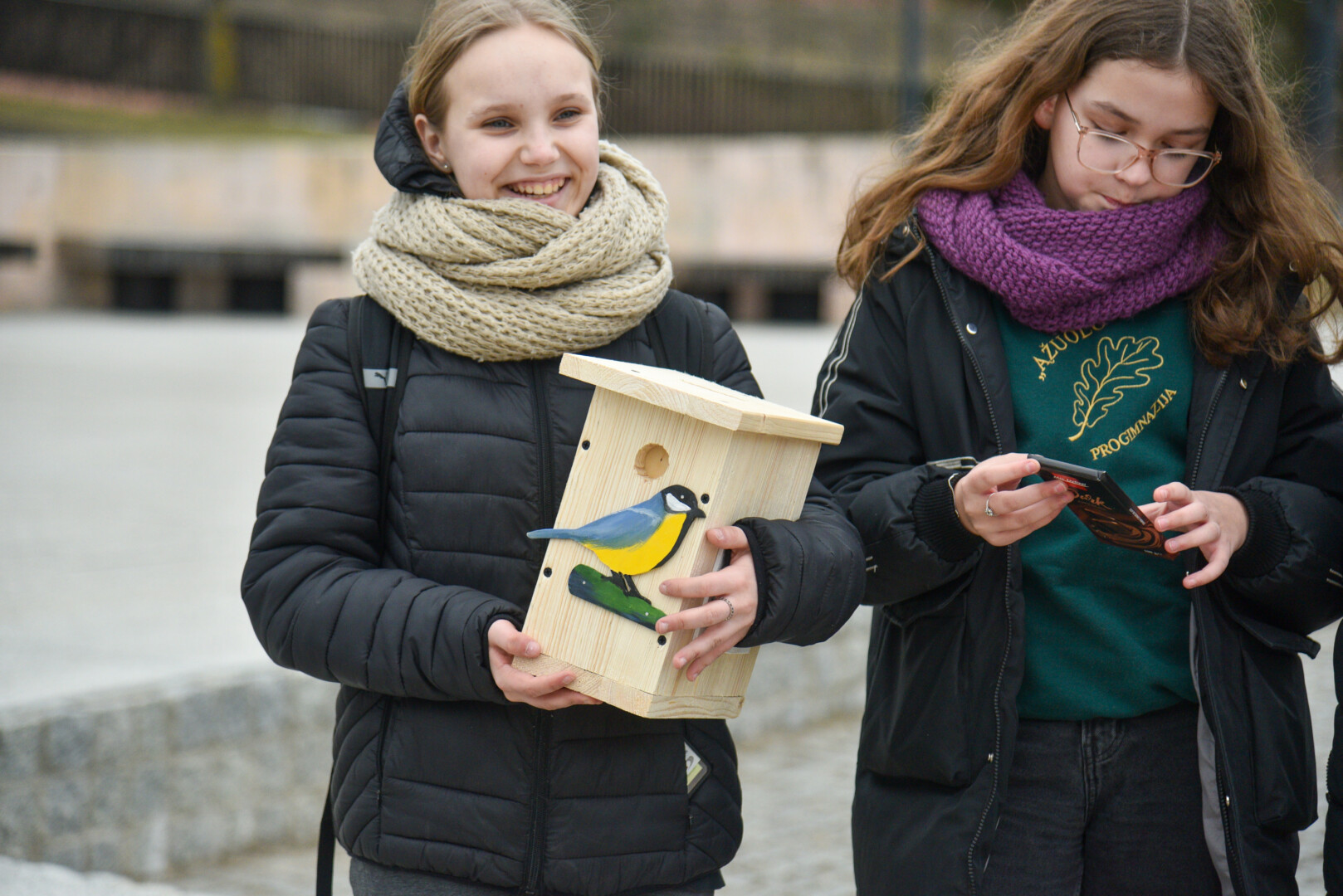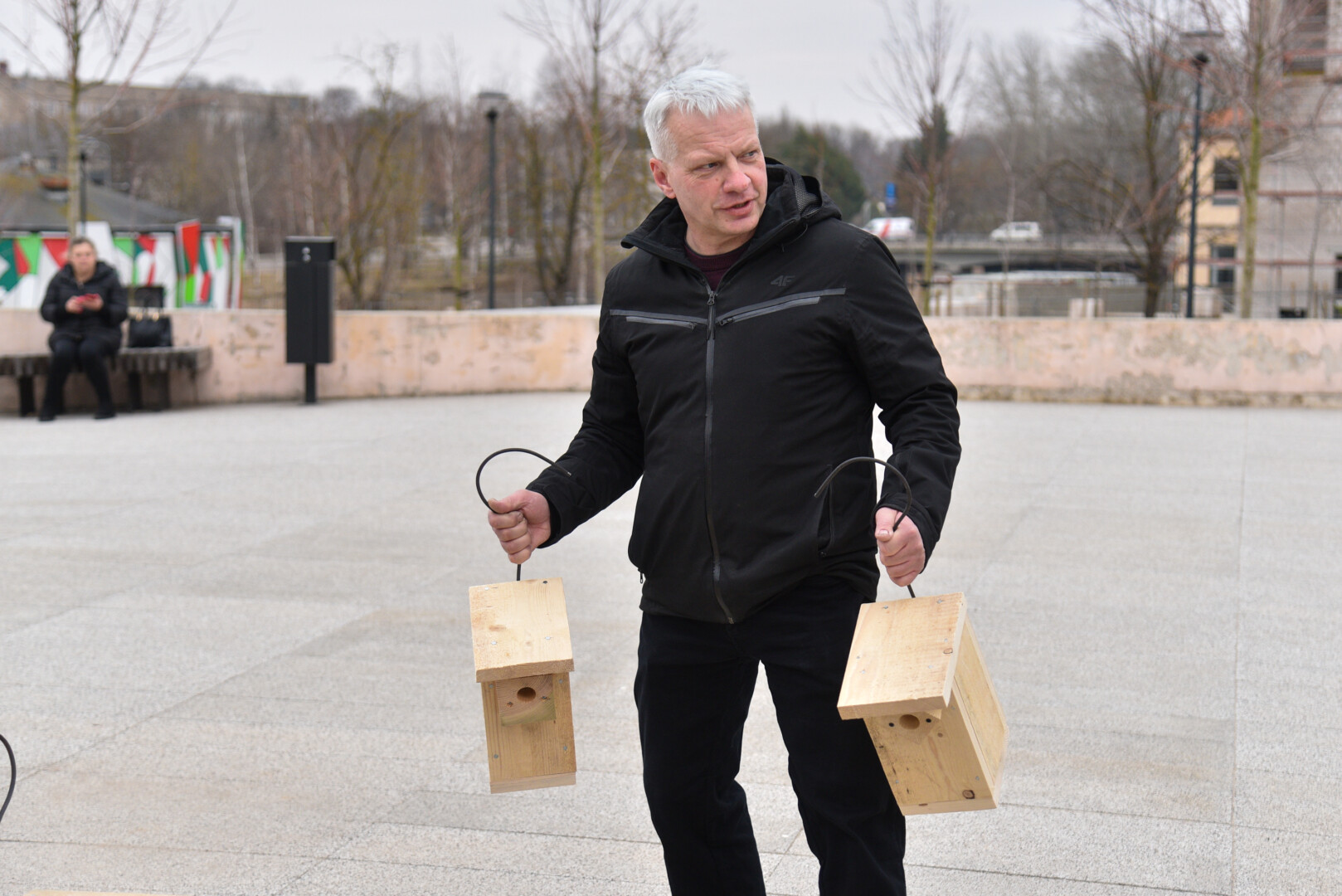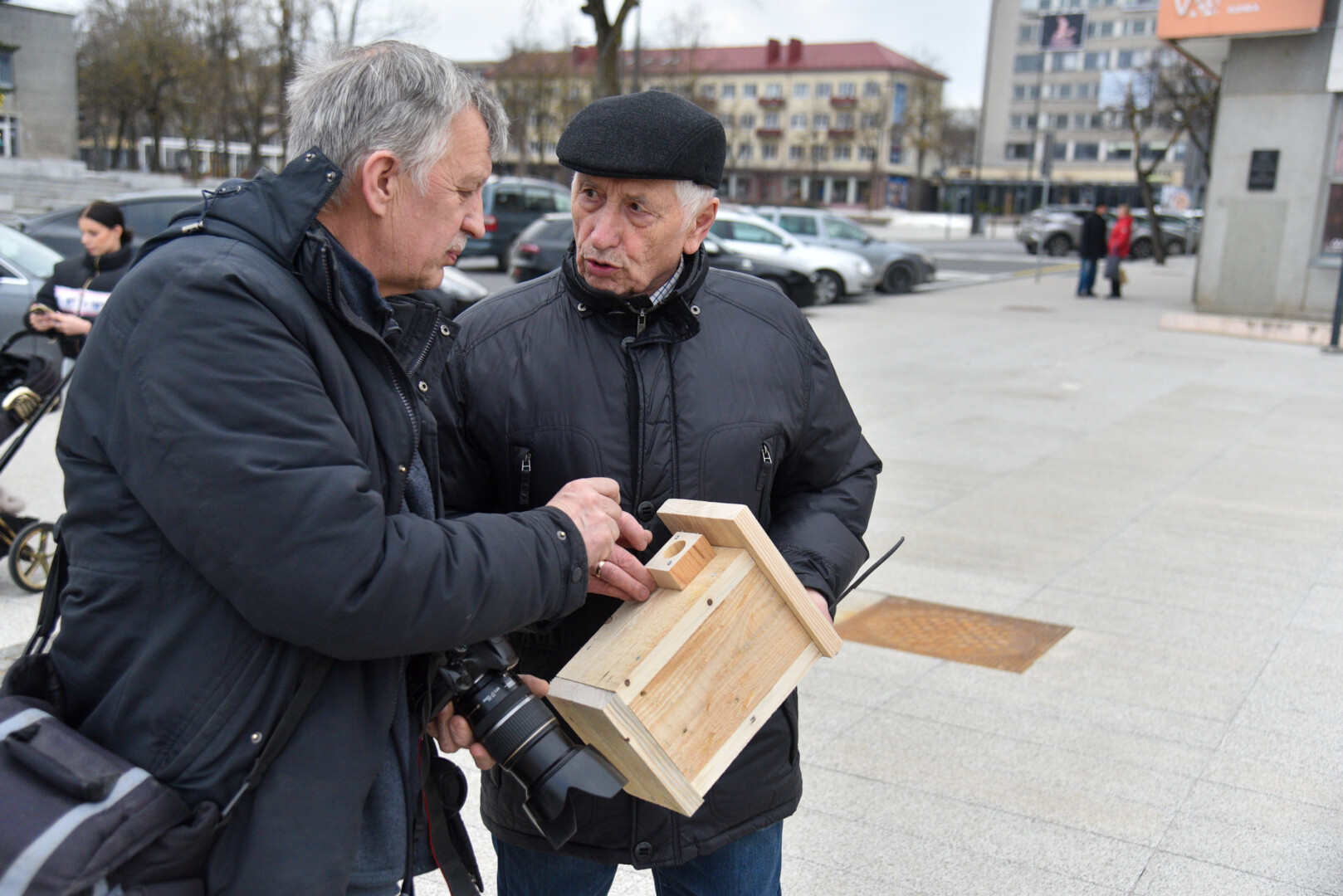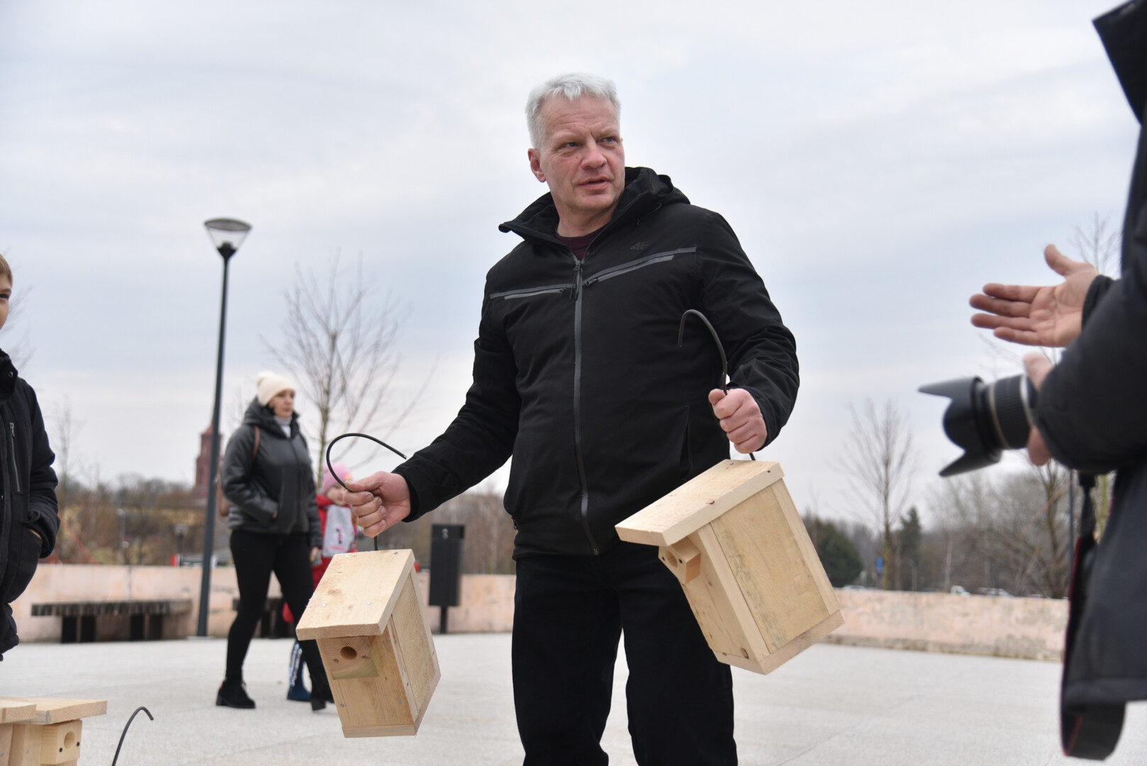 Panevėžio „Ąžuolo“ progimnazijos mokiniai Laisvės aikštėje, prie Aleksandro paminklo, panevėžiečiams atvežė sukalę keturias dešimtis inkilų sparnuočiams.