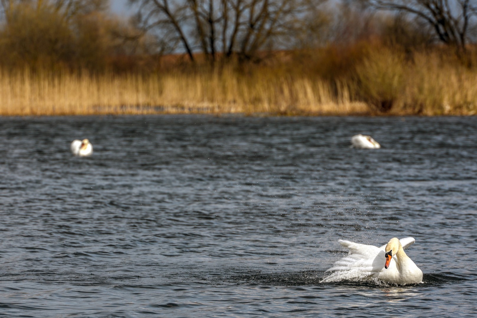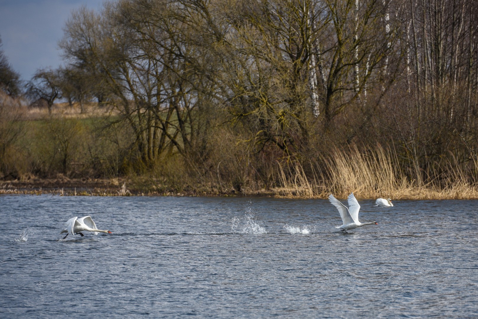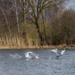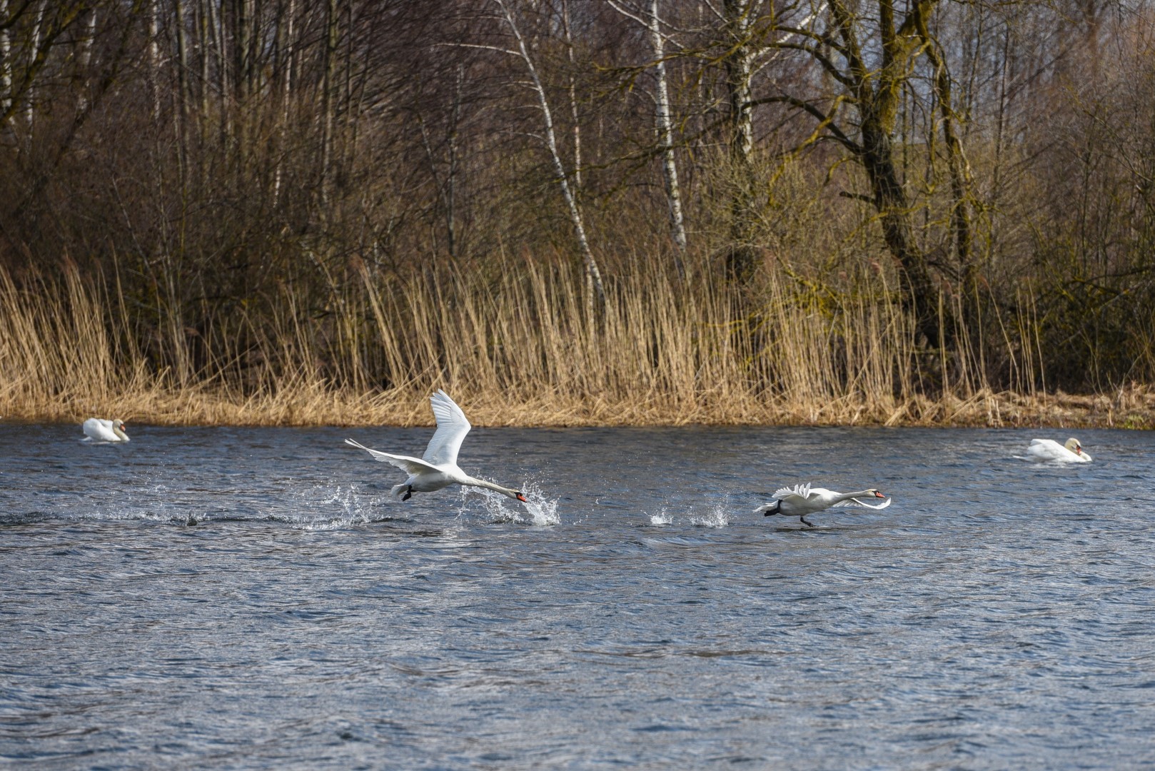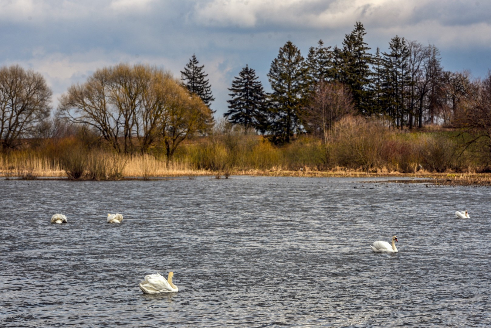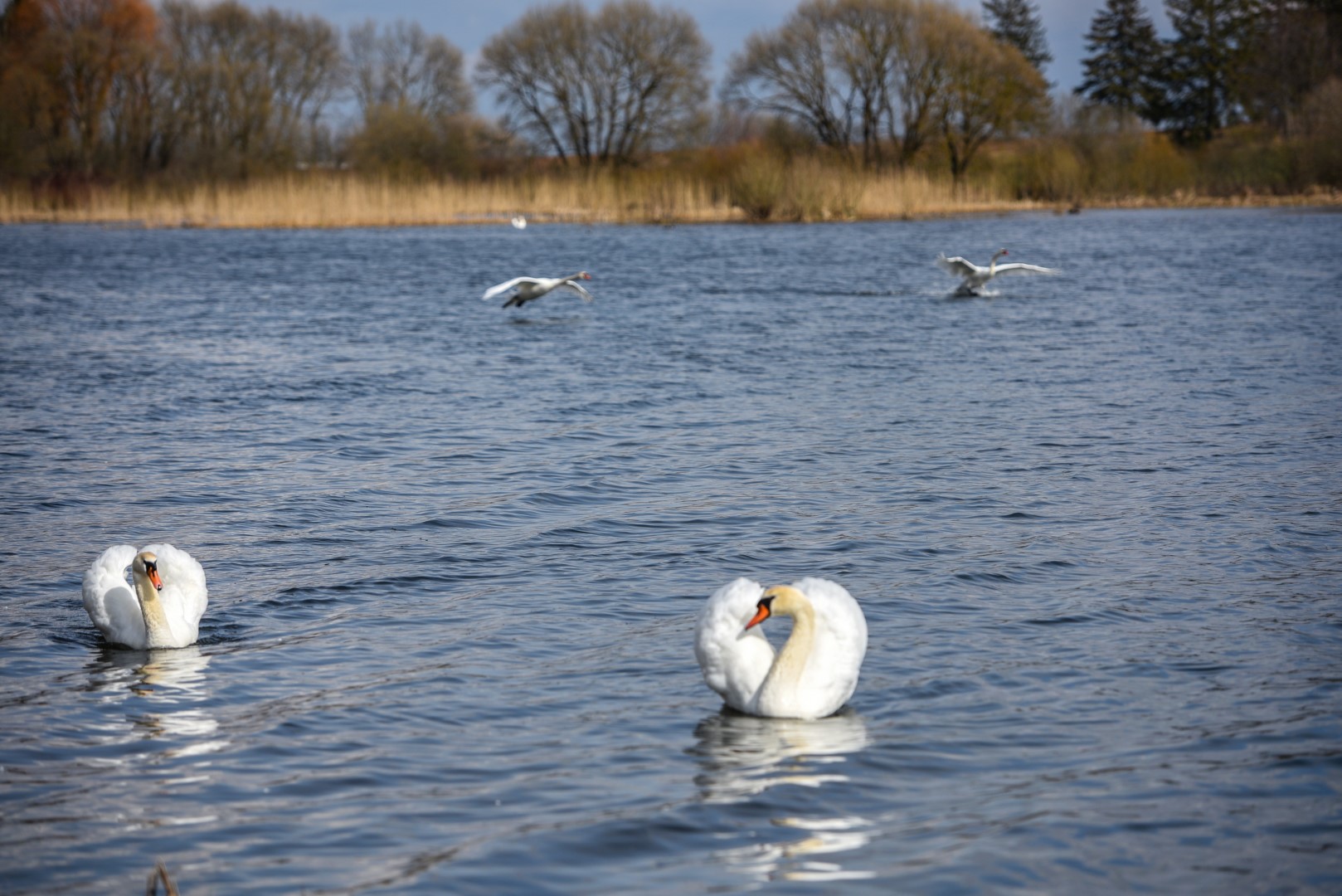 Šuojos upelio tvenkinys balandį virsta šių išdidžių paukščių karalyste, o pakrantėje išsirikiuoja į juos pažiūrėti suvažiavusių gamtos mylėtojų automobiliai.