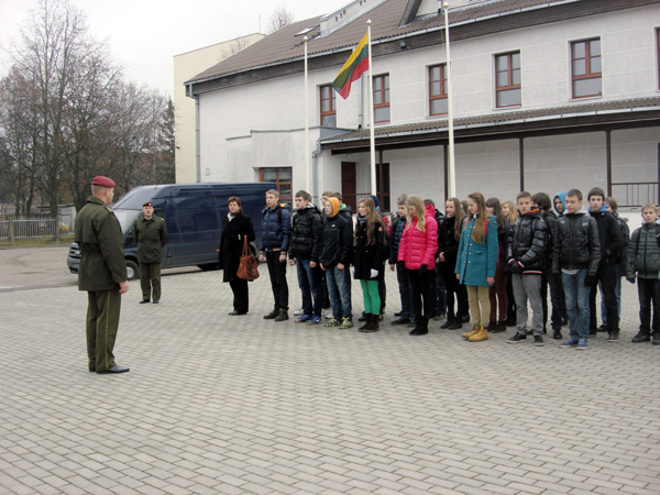Deja, mokykloje pasigendame naujausios informacijos apie jos struktūrą, veiklą, ginkluotę. Todėl aštuntokai apsilankė KASP Vyčio 5-ojoje rinktinėje Panevėžyje. Kapitonas Audrius Mordasas priminė, kad jų teritorijoje galioja labai griežti įstatymai. Išsirikiavome, mokėmės sukinių ir žygiuoti. Auditorijoje sužinojome apie kuopos veiklą, pratybas, misijas.
