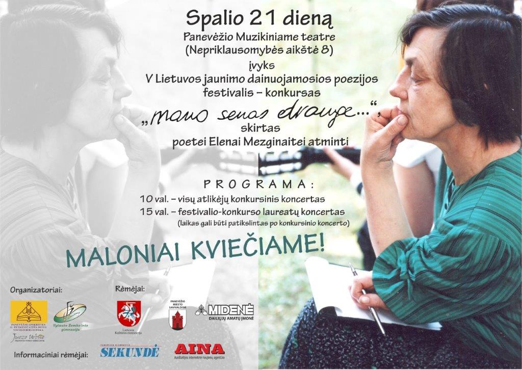 Vienas skambiausių E. Mezginaitės paminėjimo akcentų – kaskart džiuginantis jaunimo kūrybingumu, šiemet jau penktasis Lietuvos jaunimo dainuojamosios poezijos festivalis-konkursas „Mano senas drauge…“.