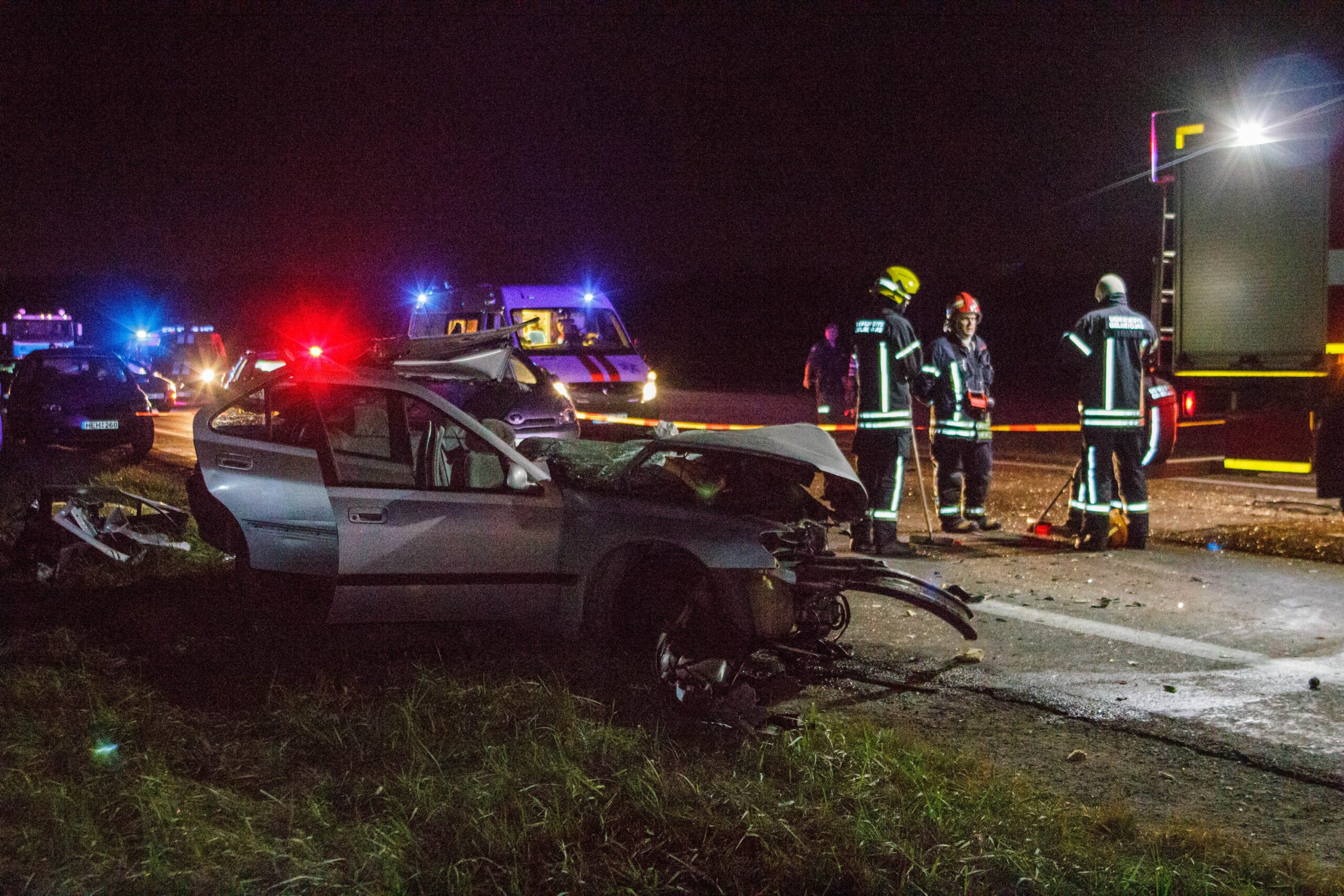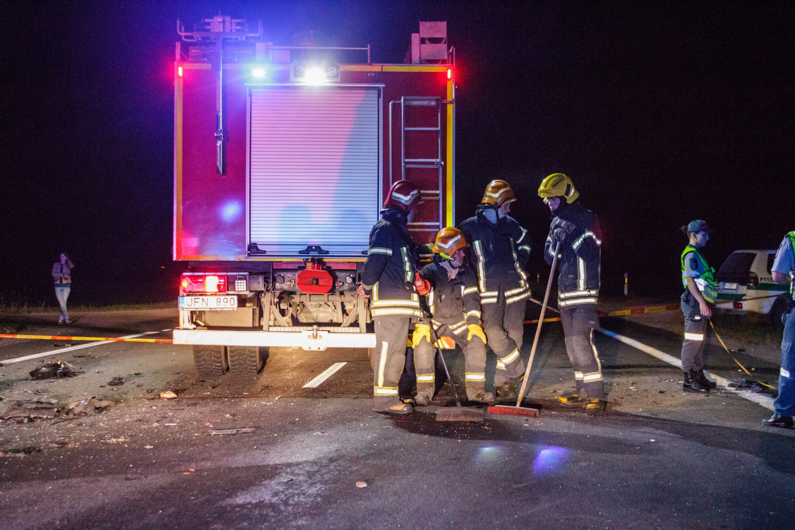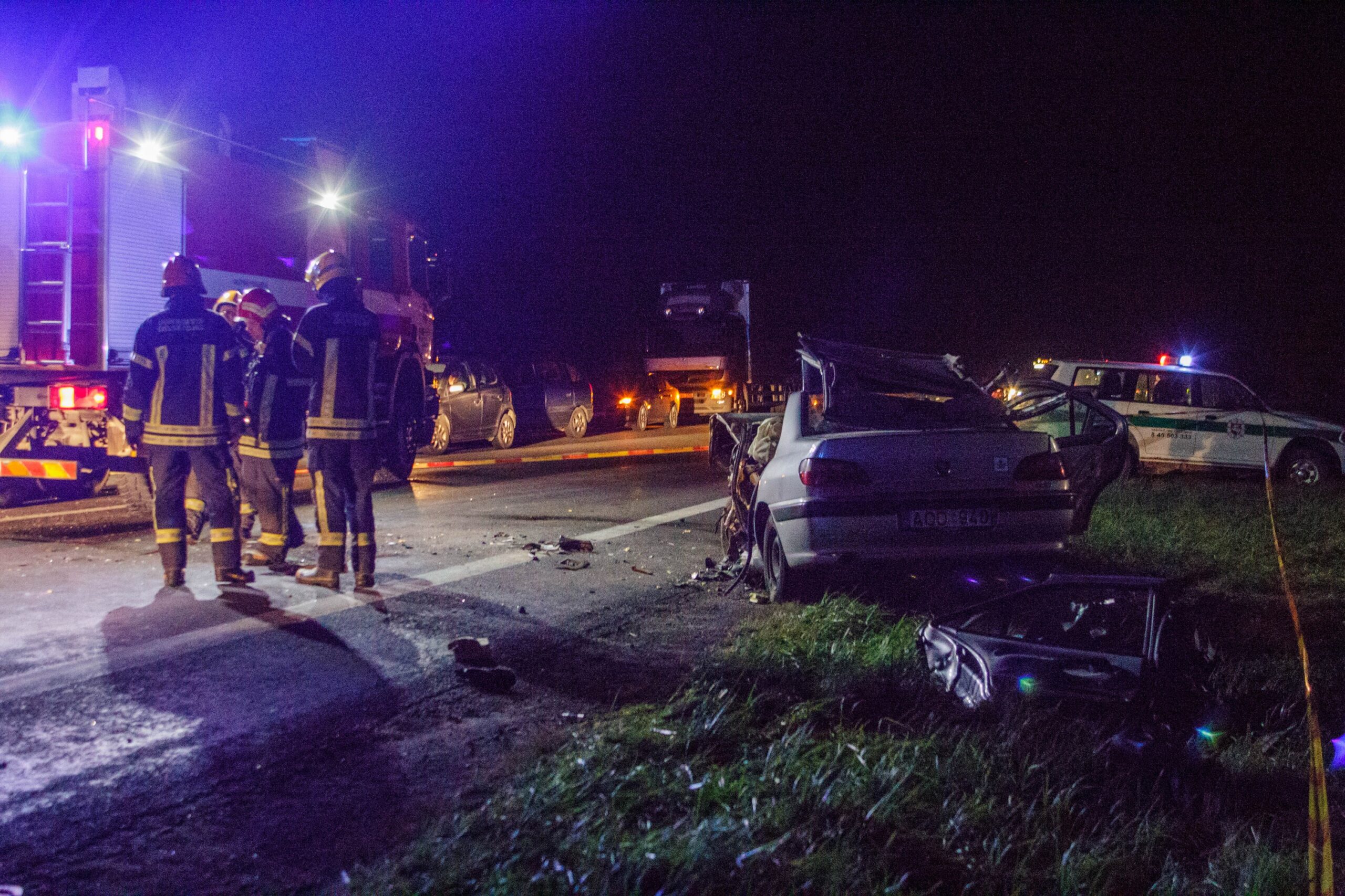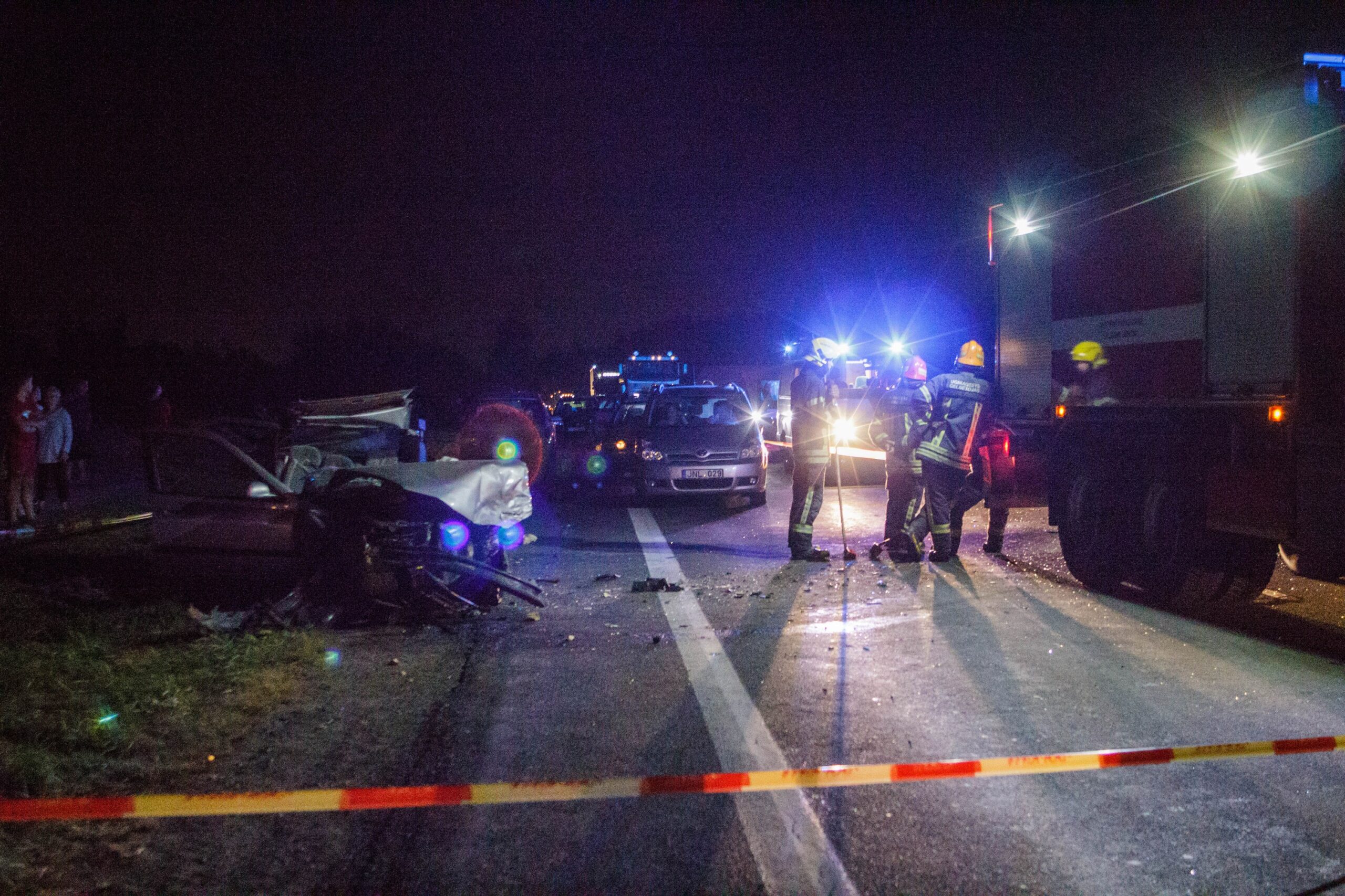 Į įvykio vietą skubiai išsiųsti trys greitosios pagalbos ekipažai bei ugniagesiai gelbėtojai. Jų pagalbos prireikė vaduoti žmones iš suknežinto automobilio. Smūgio būta tokio stipraus, kad viena transporto priemonė virtusi metalo laužo krūva.