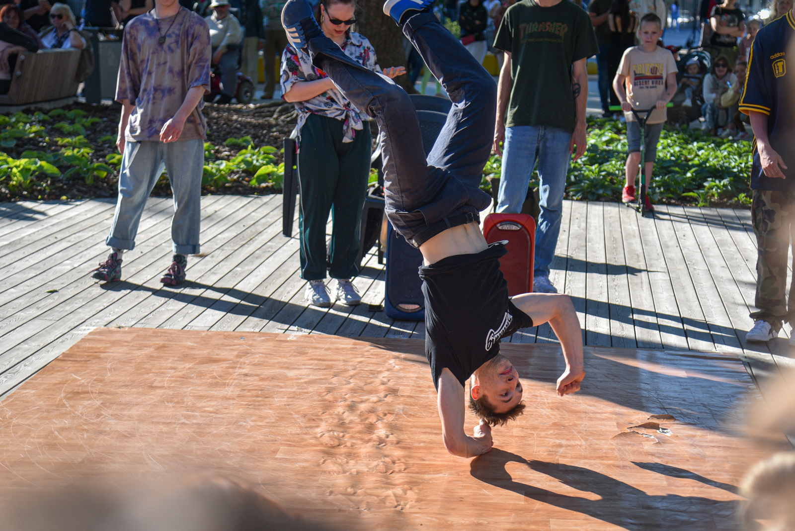 Šįkart į susitikimą Laisvės aikštėje atėjusius panevėžiečius šokti kvietė gatvės šokių studija „Skillz“ iš Vilniaus. Juos keitė Panevėžio teatro „Menas“ aktorių teatralizuotas koncertas, o vakarą vainikavo šokių fiesta. Joje panevėžiečiai mokėsi linijinių šokių su miesto šokių studijomis.