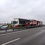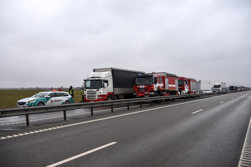VPK komunikacijos specialisto Tado Martinaičio teigimu, per avariją susidūrė vilkikas „Mercedes“, mikroautobusas „Mercedes“ ir motociklas.