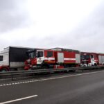 Gelbėtojams perduota informacija, jog susidūrė krovininis ir lengvasis automobiliai bei motociklas, yra prispaustas ir sužeistas žmogus.