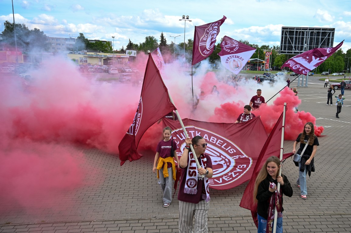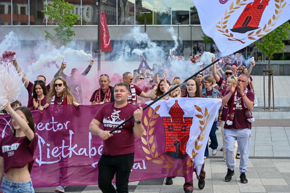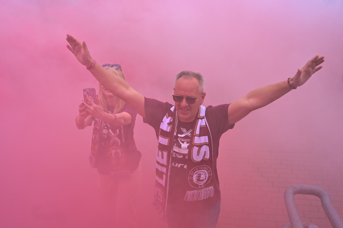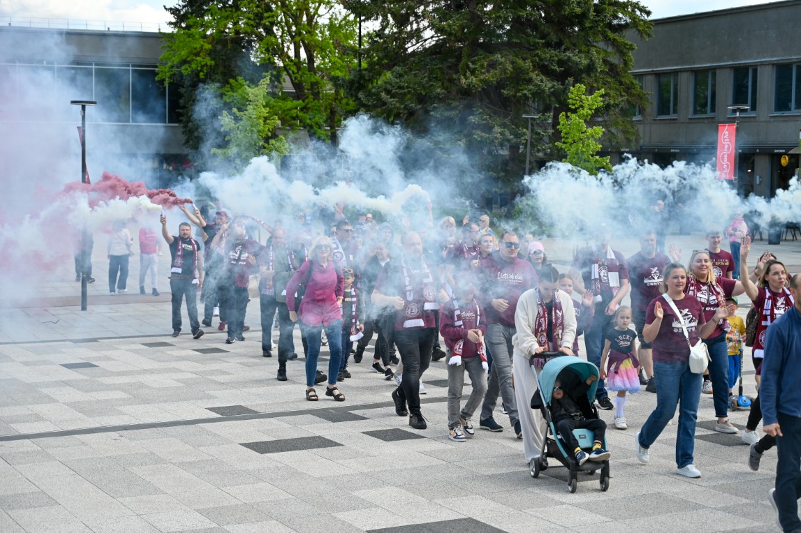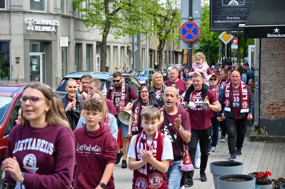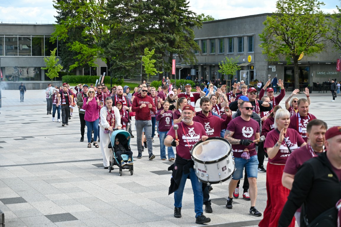 Eisenoje netrūko nei emocijų, nei simbolikos – sirgaliai žygiavo pasipuošę bordo baltos spalvos atributika, mojavo vėliavomis ir šalikais.