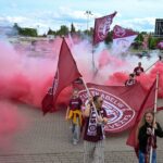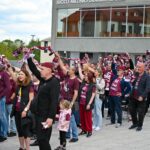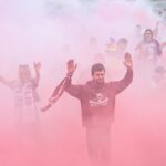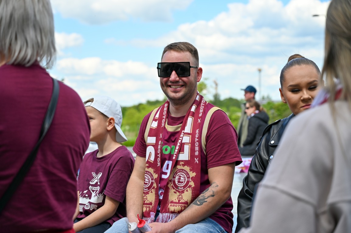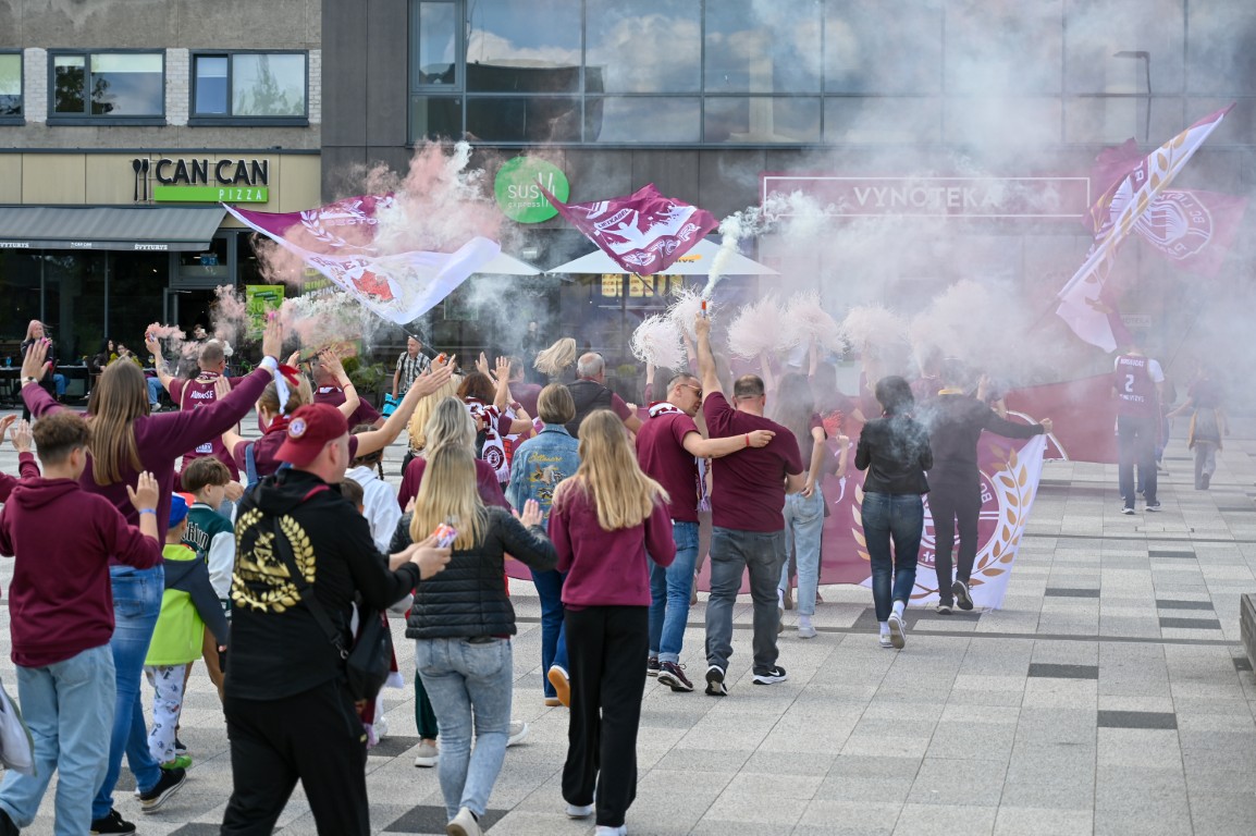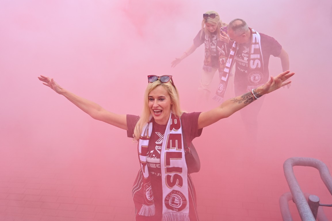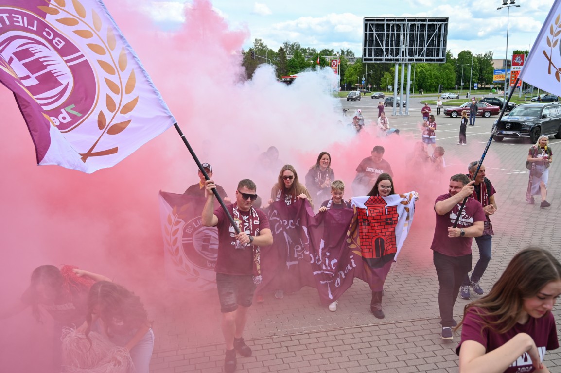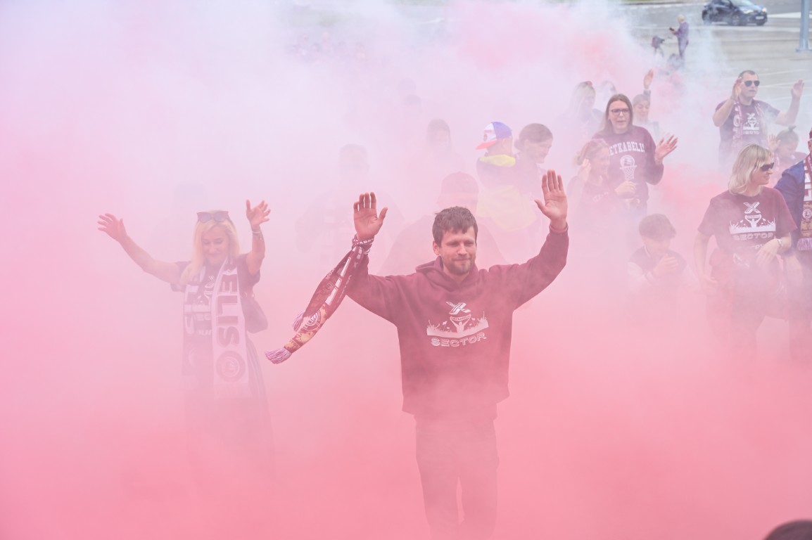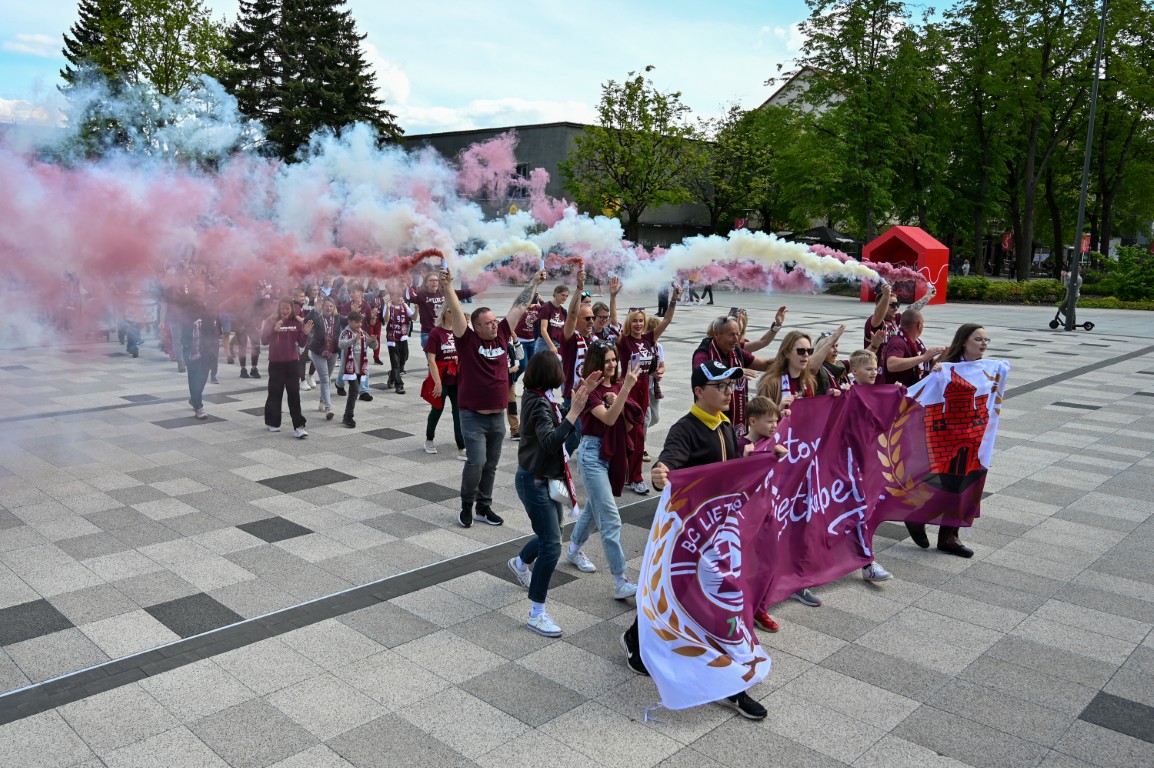 Eisenoje netrūko nei emocijų, nei simbolikos – sirgaliai žygiavo pasipuošę bordo baltos spalvos atributika, mojavo vėliavomis ir šalikais.