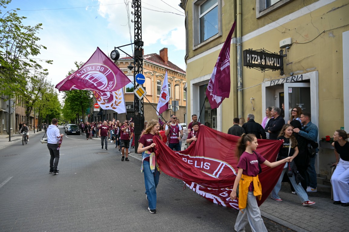 Sekmadienio popietę Panevėžio gatvėse aidėjo būgnai ir skambėjo sirgalių skanduotės – per miestą nusidriekė „7bet-Lietkabelio“ klubo sirgalių eisena.