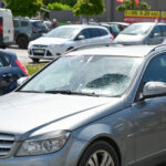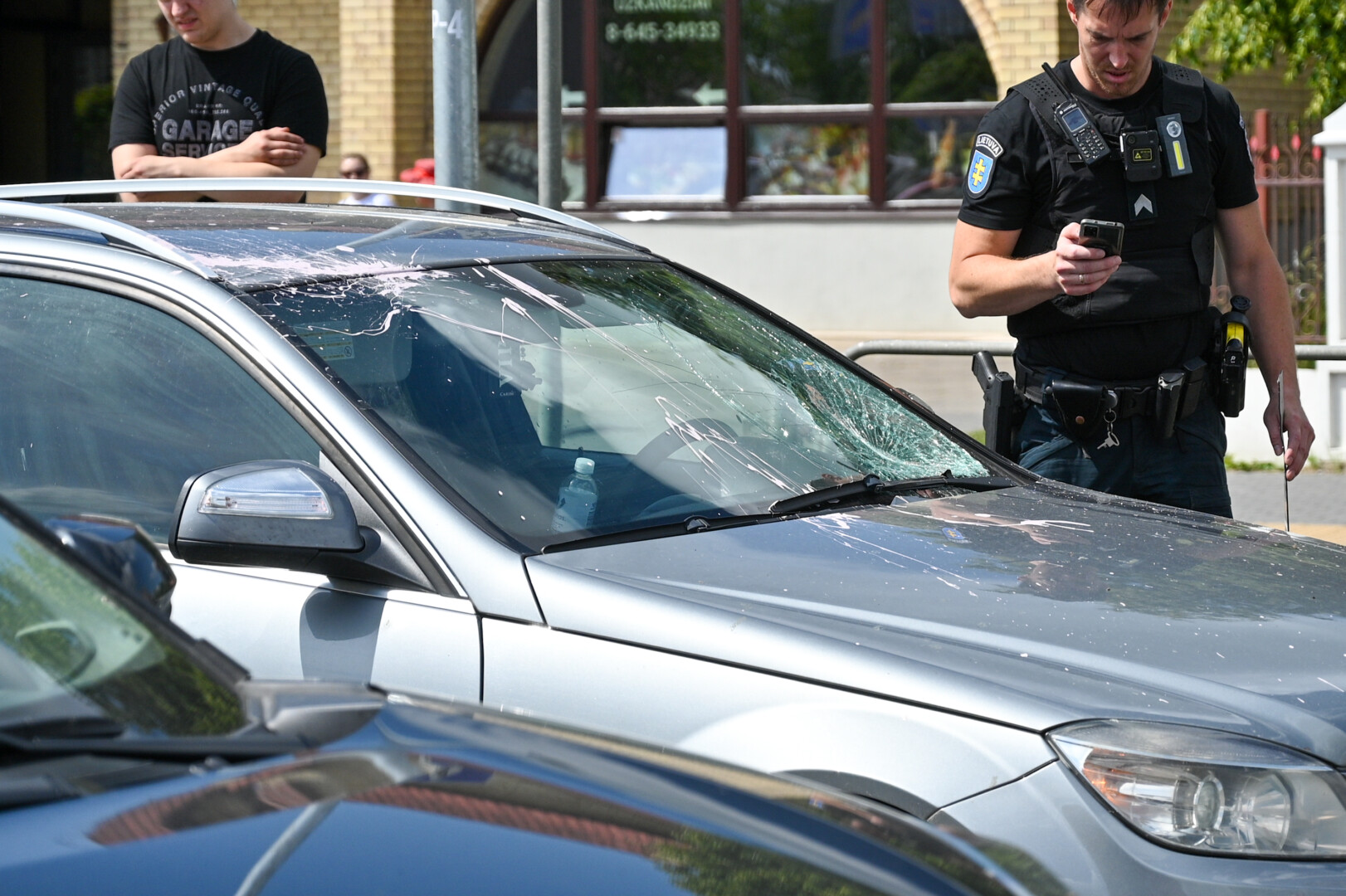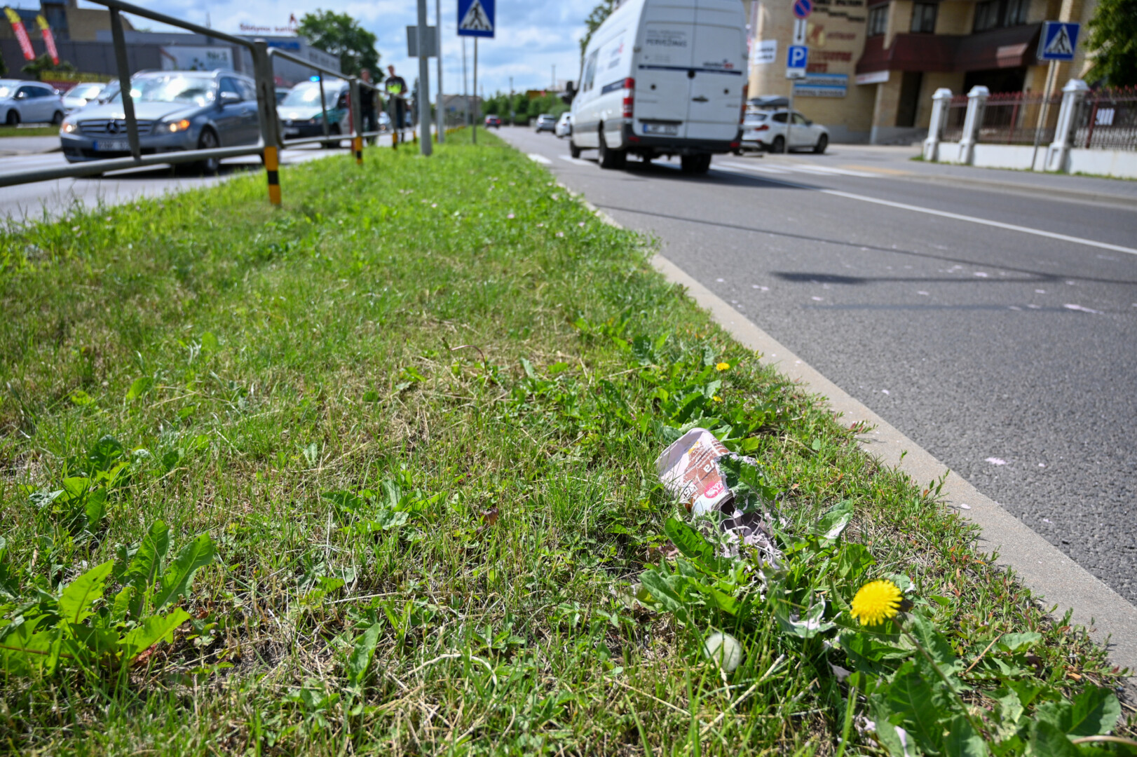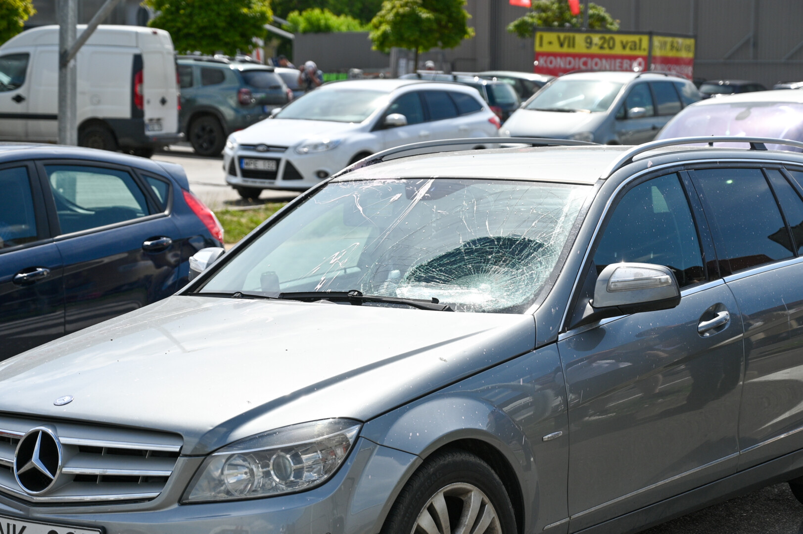 Vyras per perėją ėjo nešinas dažų skardine. Nuo smūgio dažai ištiško ant automobilio stiklo ir stogo, o pati skardinė nulėkė dar už kelių metrų.