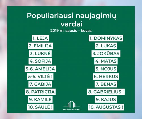 Tiesa, šiemet ši įdomi tendencija nutrūko. Per pirmus tris šių metų mėnesius dažniausiai berniukui duodamu vardu tapo Dominykas, o Lėja ir toliau išlieka populiariausiu vardu gimus mergaitei.