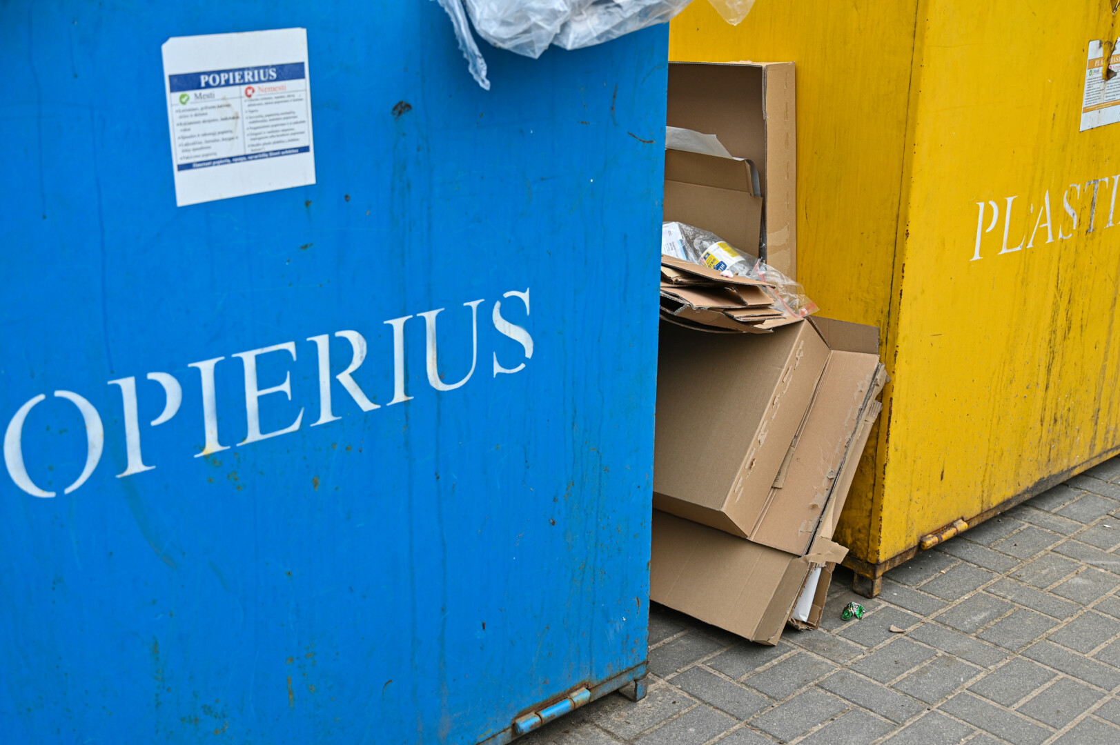 „Jeigu kartoninės dėžės būtų tvarkingai išlankstytos, užimtų daug mažiau konteinerio tūrio. Dabar popieriaus konteineris pustuštis, bet atliekos nebetelpa.“