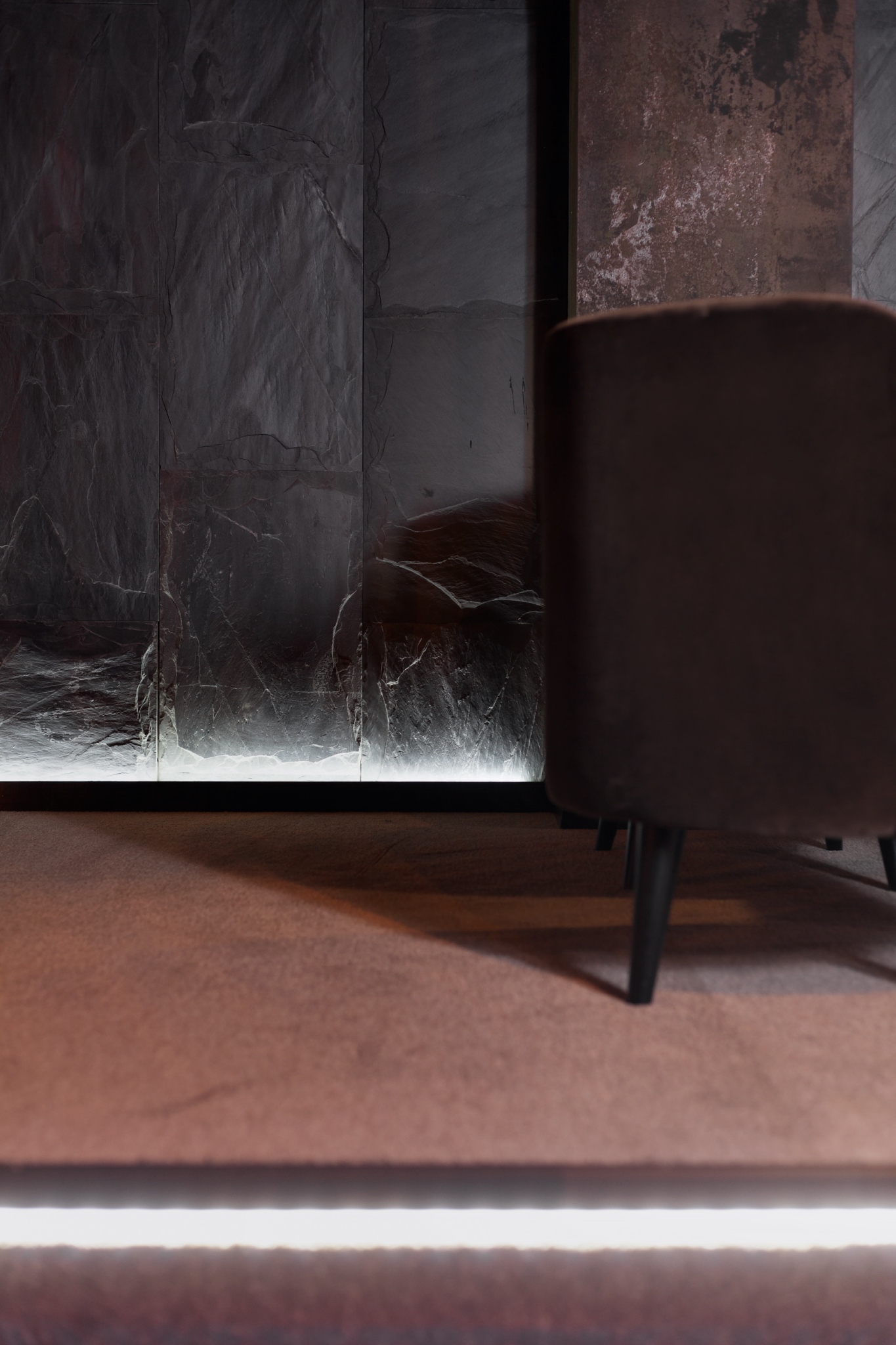 „Yes.design.architecture“ studijos kūrėjos sako, kad norėjo naudoti tik natūralias medžiagas, todėl visi stalai pagaminti tik iš akmens arba medžio.