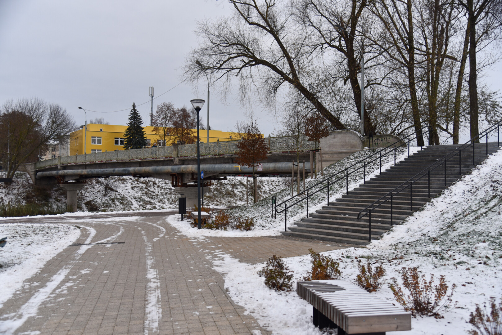 Pėsčiųjų tiltas, jungiantis A. Jakšto gatvę ir Bendruomenių rūmų prieigas, pagal pirminį projektą jau turėjo būti sutvarkytas 2021-aisiais.