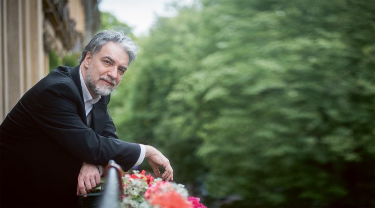 Sulaukiu P. Geniušo skambučio. Jis mandagiai perspėja, kad neskubėčiau eiti į susitikimo vietą (arba, jei jau išėjau, žingsniuočiau kaip įmanoma lėtesniu žingsniu), nes paskutinė jo paskaita šiek tiek užsitęsė. Patikinu, kad eisiu koja už kojos. Vakaras šiltas ir saulėtas, tik pastebimai ima stiprėti vėjas, o dangumi prasliuogia vienas kitas tamsesnis debesis. Vos išnyru iš už gatvių kampo ir atsiduriu tiesiai prie mūsų sutarto restorano, išvystu maestro jau stovintį jo terasoje. „Visgi neužtrukau“, – plačiai šypsodamasis pamoja jis. P. Geniušas vilki rausvus languotus marškinius ir prie jų priderintą rausvą švarką.