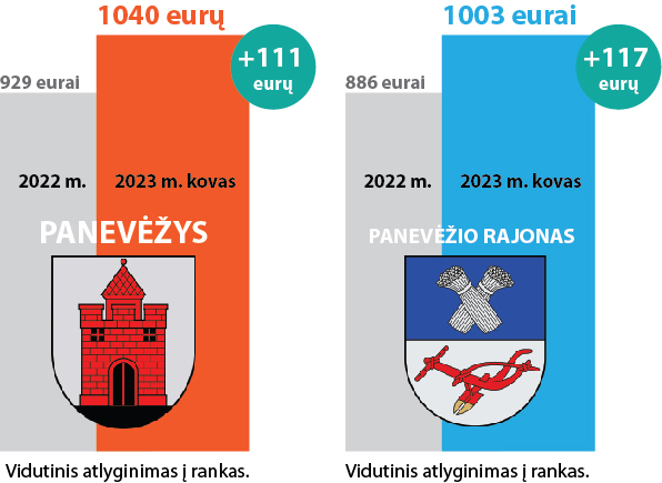 Panevėžio rajone darbo užmokestis ūgtelėjo kiek daugiau – apie 117 eurų, tačiau mėnesinė alga vis tiek keliomis dešimtimis eurų mažesnė nei miestiečių – vidutiniškai 1003 eurai į rankas.