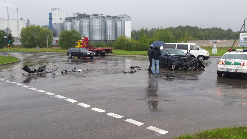 Maždaug apie 11.30 val. Pušaloto ir Pramonės gatvių sankryžoje susidūrė du automobiliai. Pirminiais duomenimis, BMW automobilis važiavo tiesiai Pušaloto gatve, kai į kairę sukęs „Volvo“ nepraleido BMW ir į jį trenkėsi. Nuo smūgio BMW priekis liko visas sumaitotas, „Volvo“ nukentėjo kiek mažiau. Policijos pareigūnai tiria avarijos aplinkybes. Aiškinamasi, ar BMW vairuotojas sankryžą kirto degant leidžiamam šviesoforo signalui.