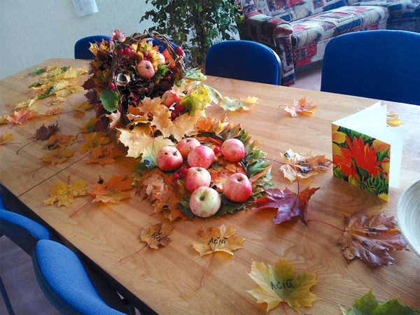 Mokytojų kambaryje taip pat laukė graži staigmena – mokinių taryba dovanojo rudeninę kompoziciją ir žavią puokštę.