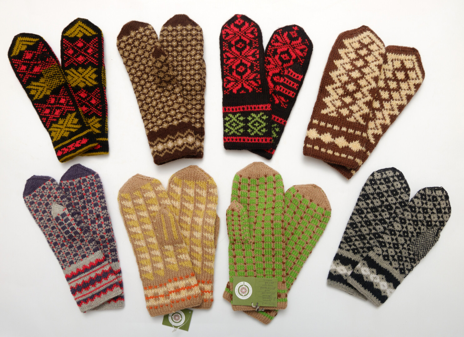 R. Žvirblienės mezgamos pirštinės, atkartojančios Aukštaitijai būdingas spalvas ir raštus, išsiskiria iš kitų auksarankių darbų gausos.