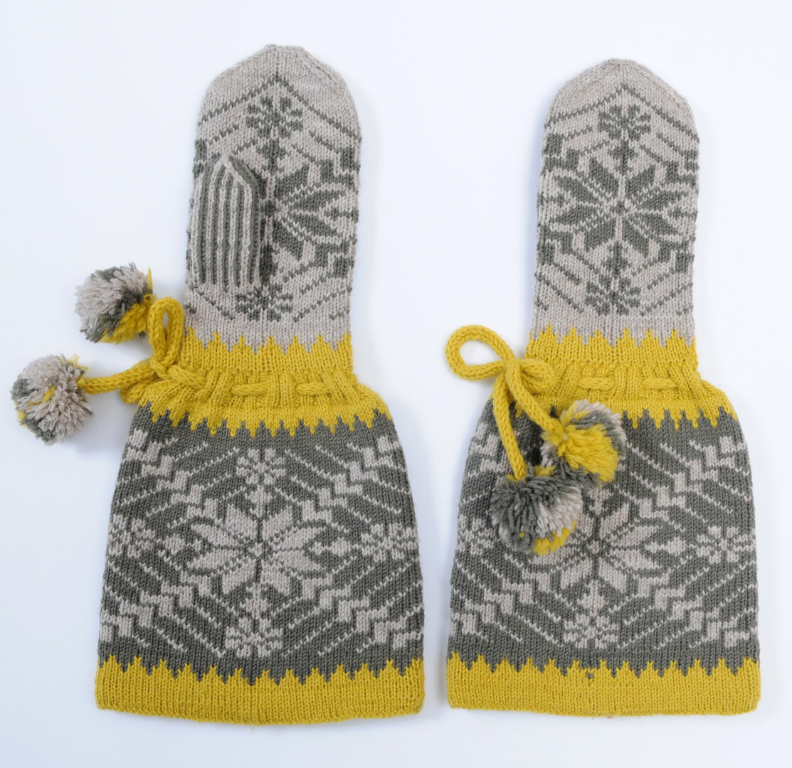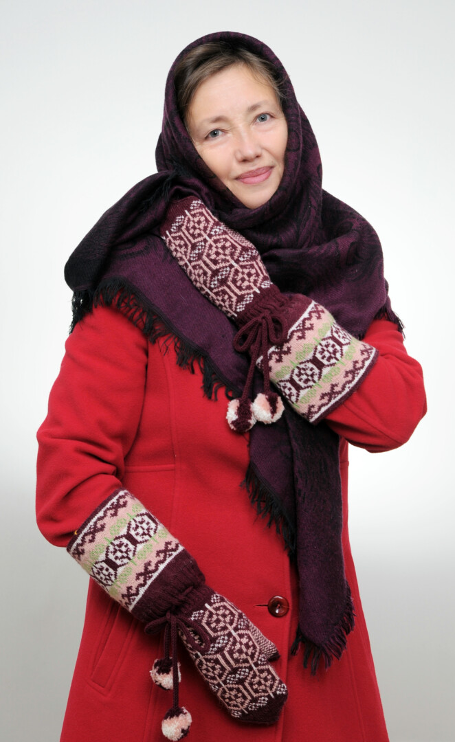 O mezga ji ne tik dvigubas, bet ir viengubas raštuotas pirštines, taip pat ir riešines.