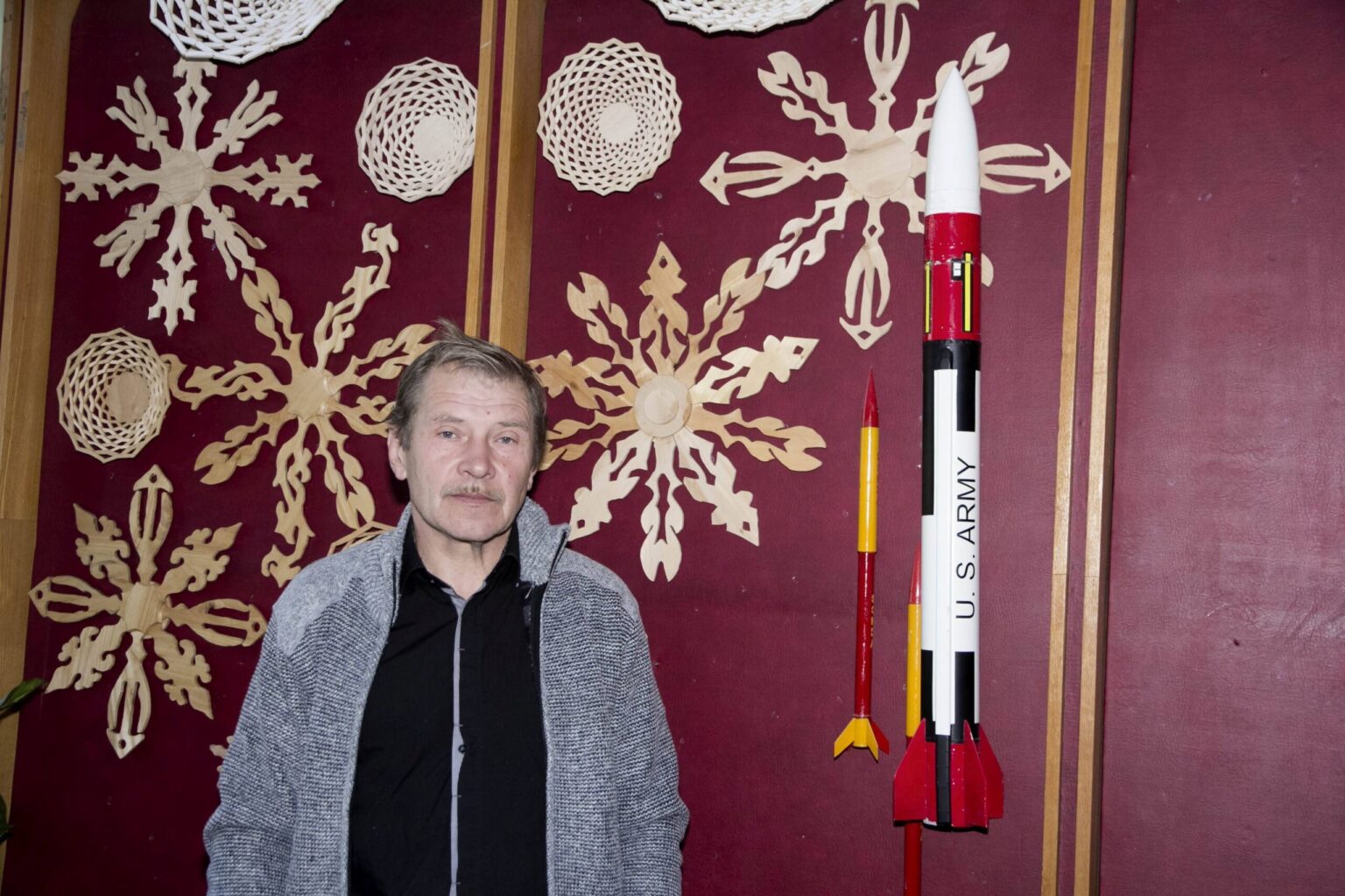 Pasakodamas apie vaikų triūsą V. Kulbokas skuba parodyti vieną įspūdingiausių savo mokinių darbų – sumažintą amerikietiškos raketos modelį. Tikrą tokį ginklą JAV į Lietuvą dar tik žada atvežti ateityje, o dembaviečiai jau turi jos kopiją. V. Kulboko asmeninio albumo nuotr.