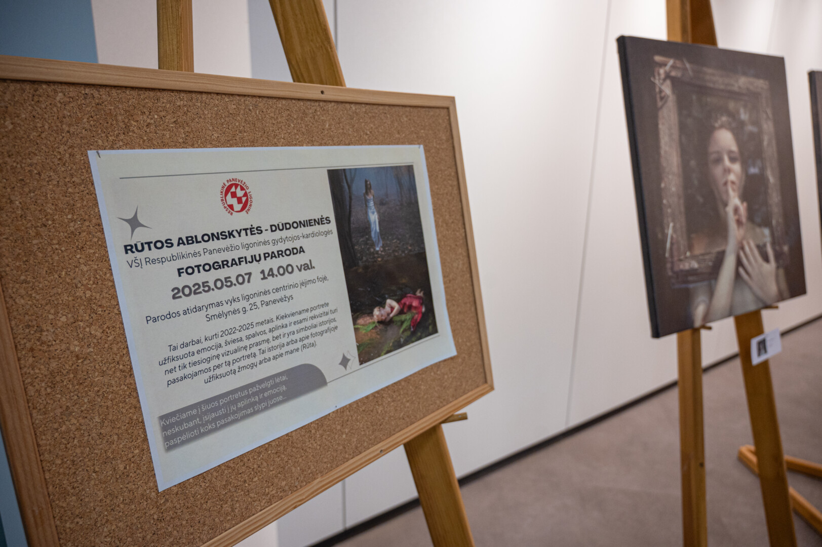 O geriausius darbus, gimusius per maždaug trejus pastaruosius jos kaip fotomenininkės ieškojimų metus, galima apžiūrėti ligoninės vestibiulyje eksponuojamoje parodoje.