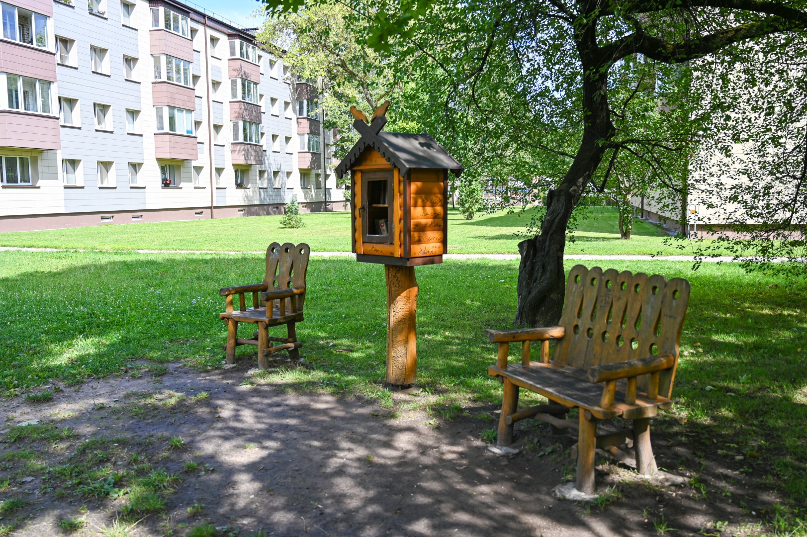 Pririnkusi gyventojų dovanojamų knygų, dar jų radusi paliktų prie konteinerių, po daugiabučių langais Smėlynės gatvės skverelyje panevėžietė įkurdino lauko bibliotekėlę.
