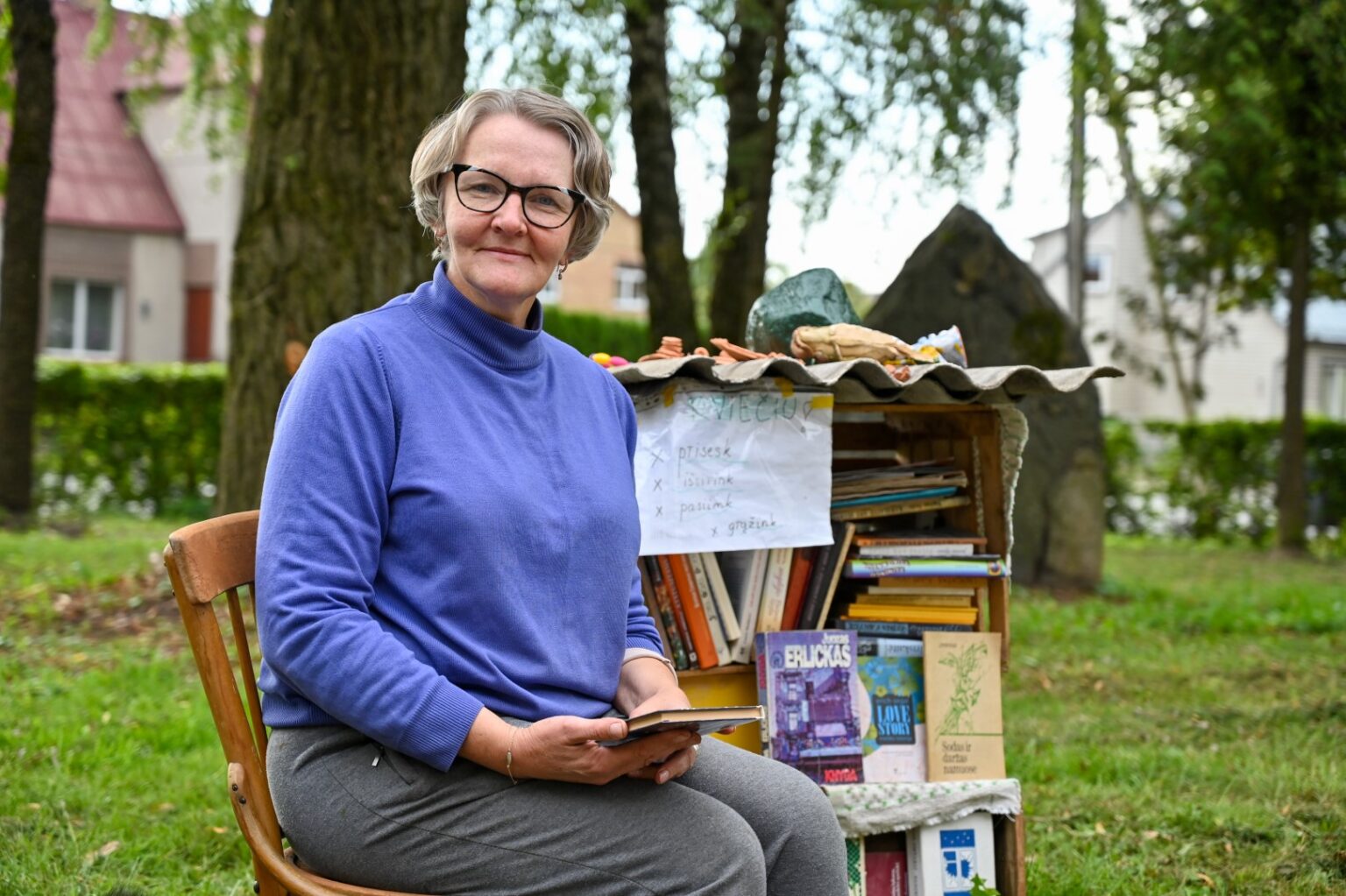 „Pamačiau, kad ir mano pačios pirktos, ir dovanų gautos knygos nebetelpa nemažame mūsų name. Taip kilo mintis jomis pasidalinti išnešant už vartų, į vietą, kurią vietiniai esame praminę žaliuoju skveru“, – pasakojo panevėžietė.