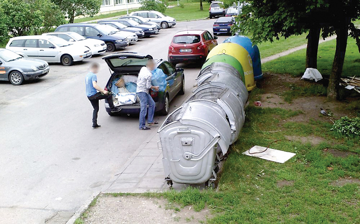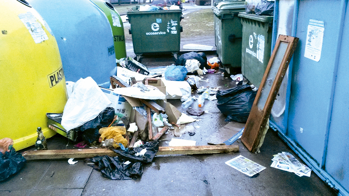 Antrinėje rinkoje įsigyjančių butą ir pertvarkančių jį tebūna vos vienas kitas, o štai naujai pastatytų būstų kvartale jų tiesiog „minia“. Du tris mėnesius pastatuose netyla gręžimas, kalimas, pjovimas bei šlifavimas, o sutemus konteinerių link sėlina atliekomis nešini siluetai. „Mūsų teritorija saugoma, veikia kameros, – pasakoja T. Dičiūnas, – kai kuriuos šiukšlintojus jau net vardais žinome. Akivaizdu, kad apeliuoti į jų sąžinę beviltiška, tad apeliuosime į piniginę“.