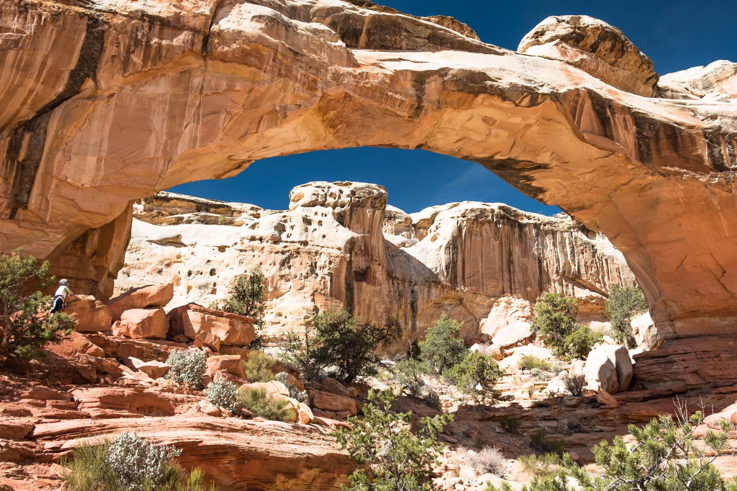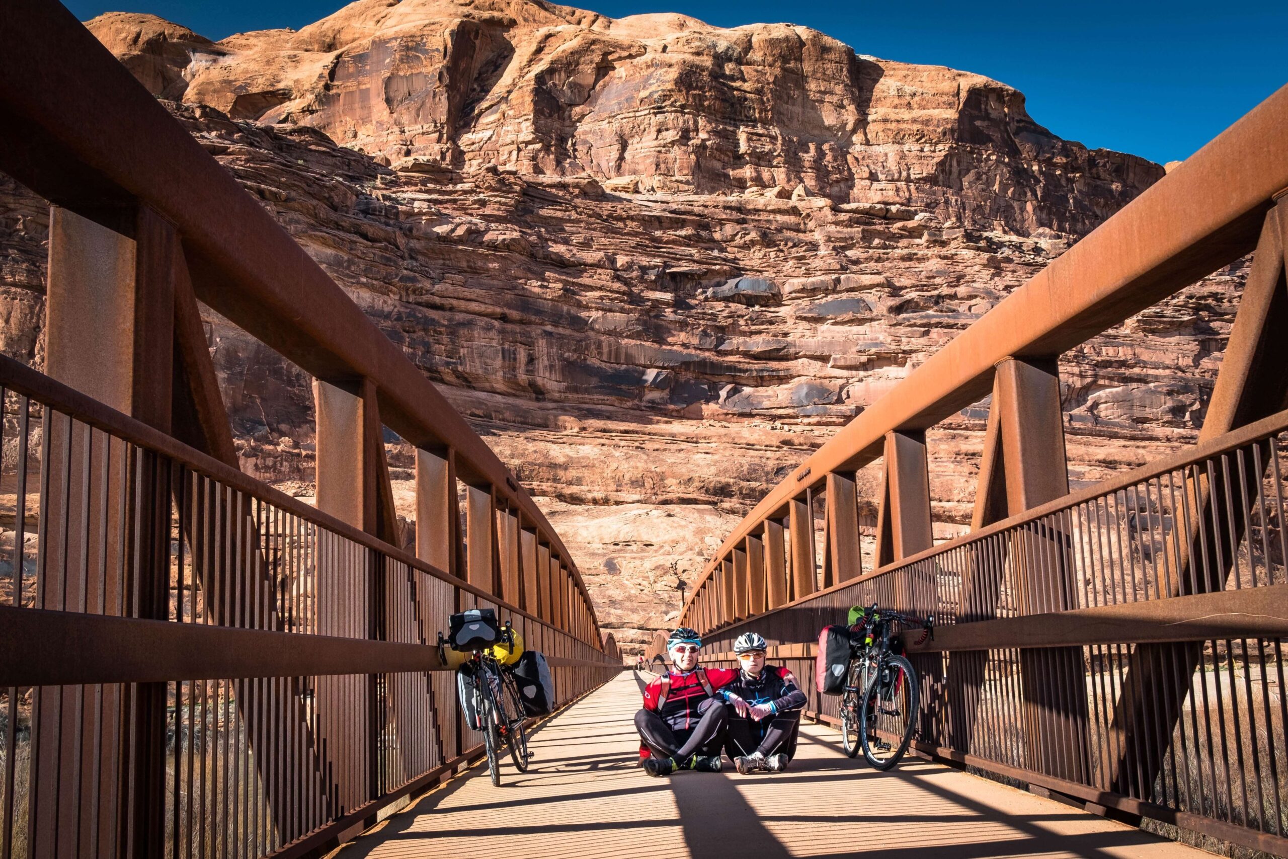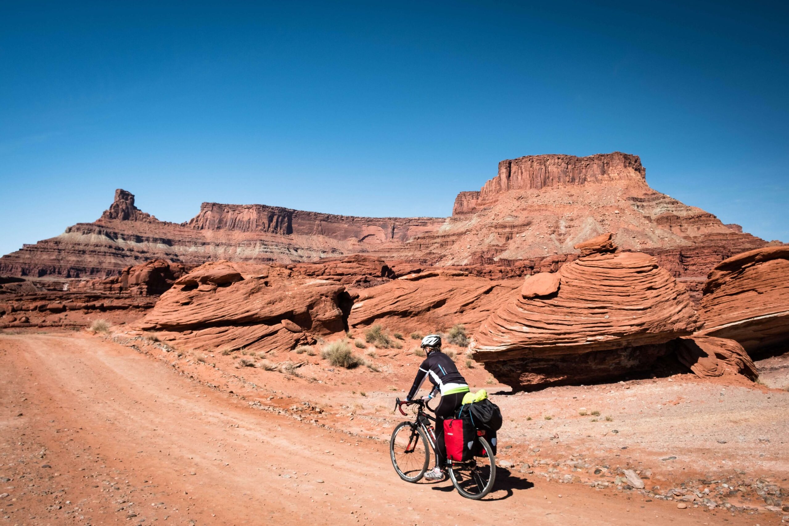 Trys nacionaliniai parkai, pora valstijų parkų, Diksio nacionalinis miškas, Grand Staircase-Escalante nacionalinis monumentas. Tokia trumpa kelionės formulė, kurią sutuoktiniai realizavo per porą savaičių. Pasirinkę linijinį maršrutą kirto Jutą iš rytų į vakarus. Tik kažkelintą intensyvių atostogų dieną važiuodami per bekraštes prerijas po pietų tradiciškai pakilus vėjui suprato, kad kelionės metu teks minti prieš vėją. „Tačiau tai – dėsnis: bet kuris dviratininkas pasakys, jog minti pavėjui beveik niekada netenka“, – šypteli G. Biržietis.