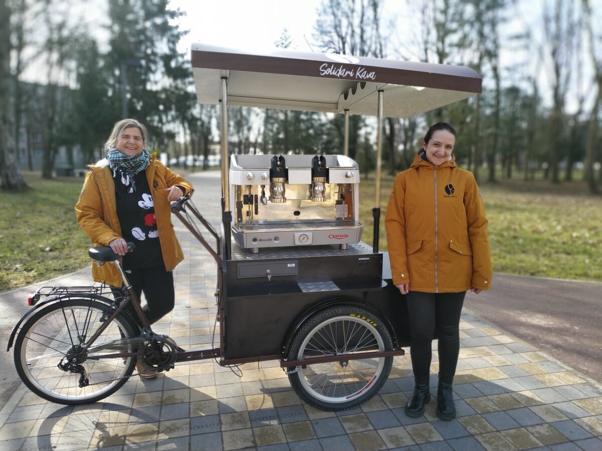 Į miestą jau rengiasi ir Jaunuolių dienos centro lankytojai. Riedėdami pagal specialų panevėžiečių užsakymą Klaipėdoje sukonstruotu triračiu vežimaičiu, neįgalieji viešose vietose pardavinės kavą.