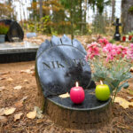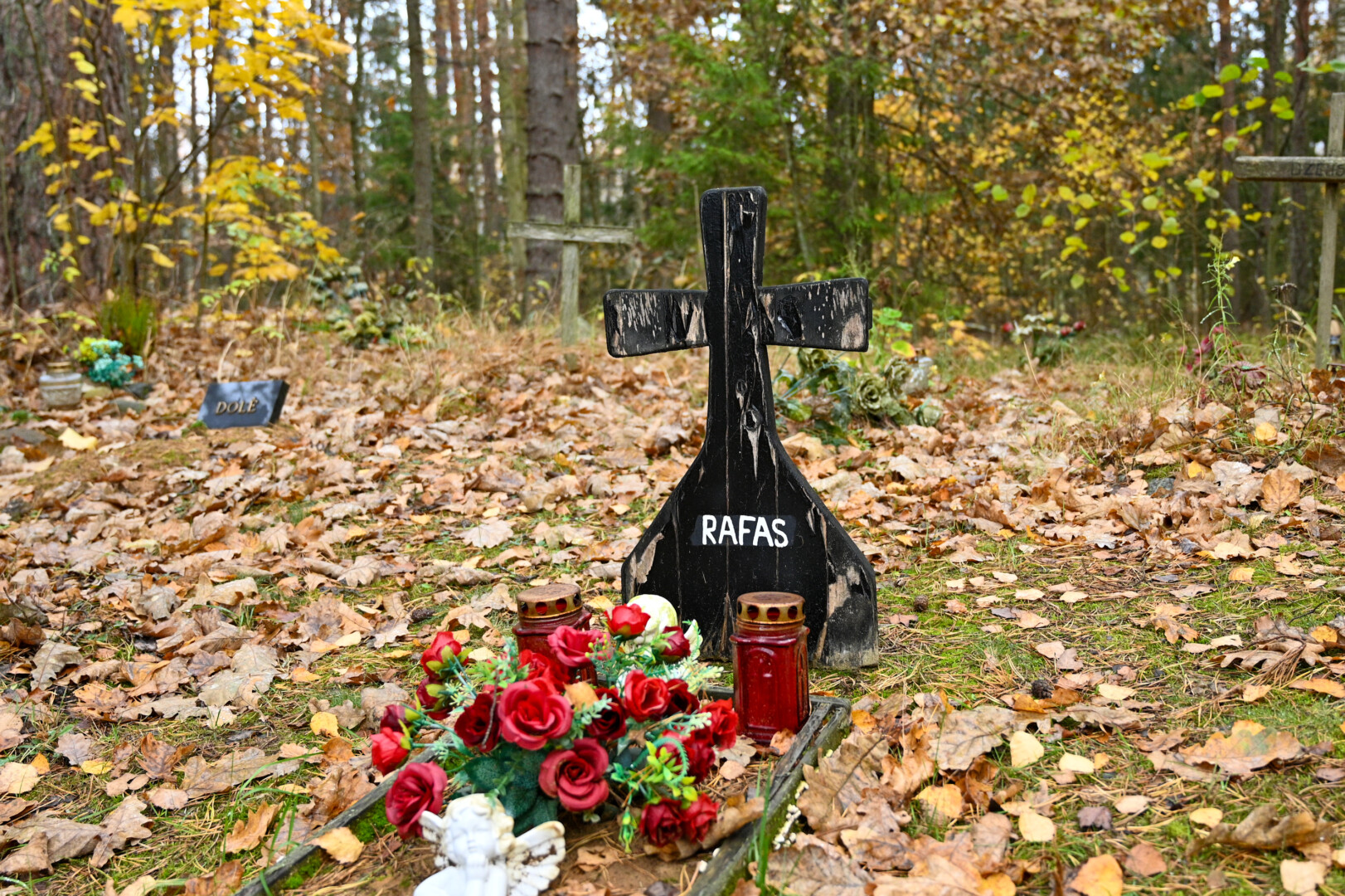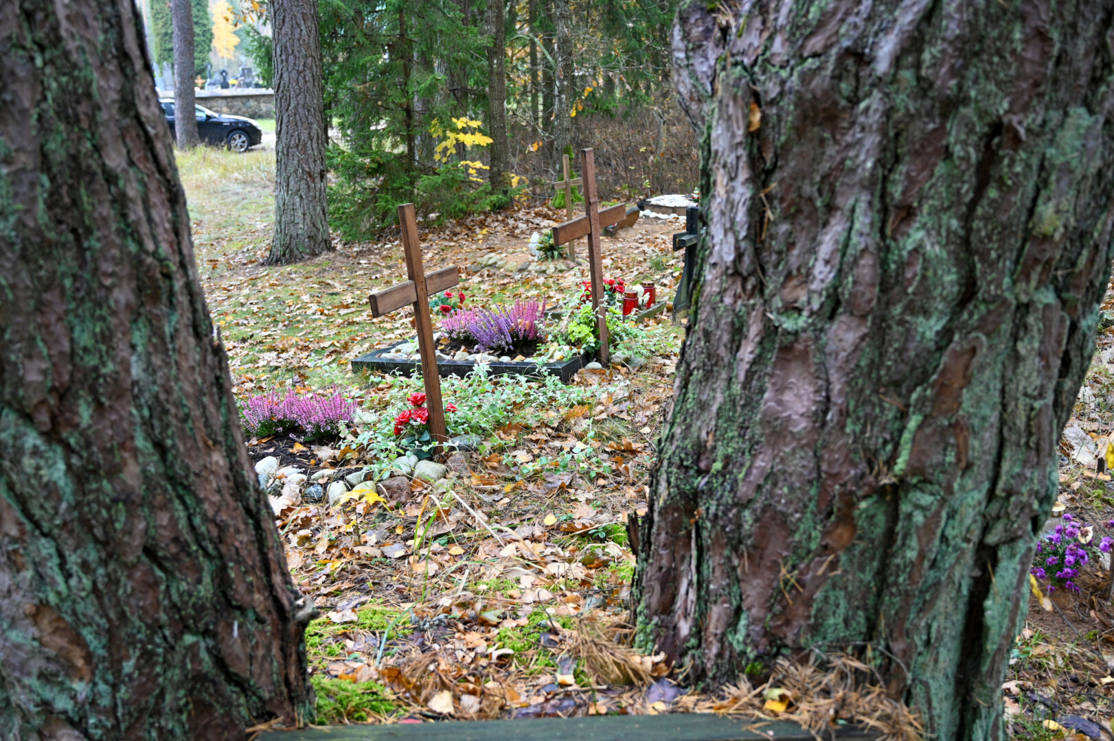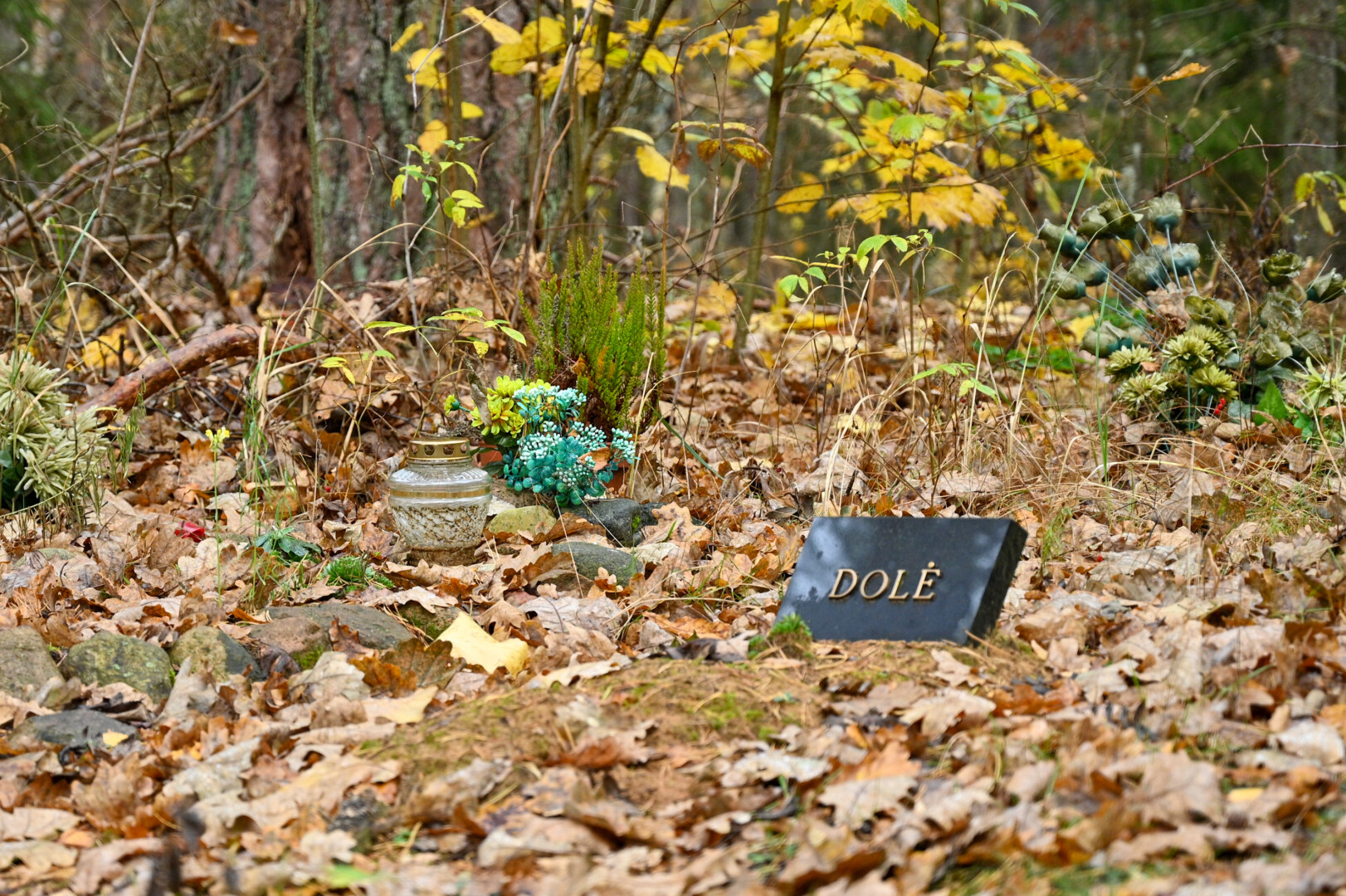 Nikutės vardas iškaltas akmenyje, ant jos kapelio plazda žvakių liepsnelės. Kiek tolėliau – akmeninis paminklas Linksmučiui Tiutikui, jo kapas dengtas antkapiu, pasodinta gėlių. Mudriaus kapelis gražiai išdėliotas akmenukais, papuoštas dirbtinių gėlių puokštė. O štai Dolės kapelis apleistas.