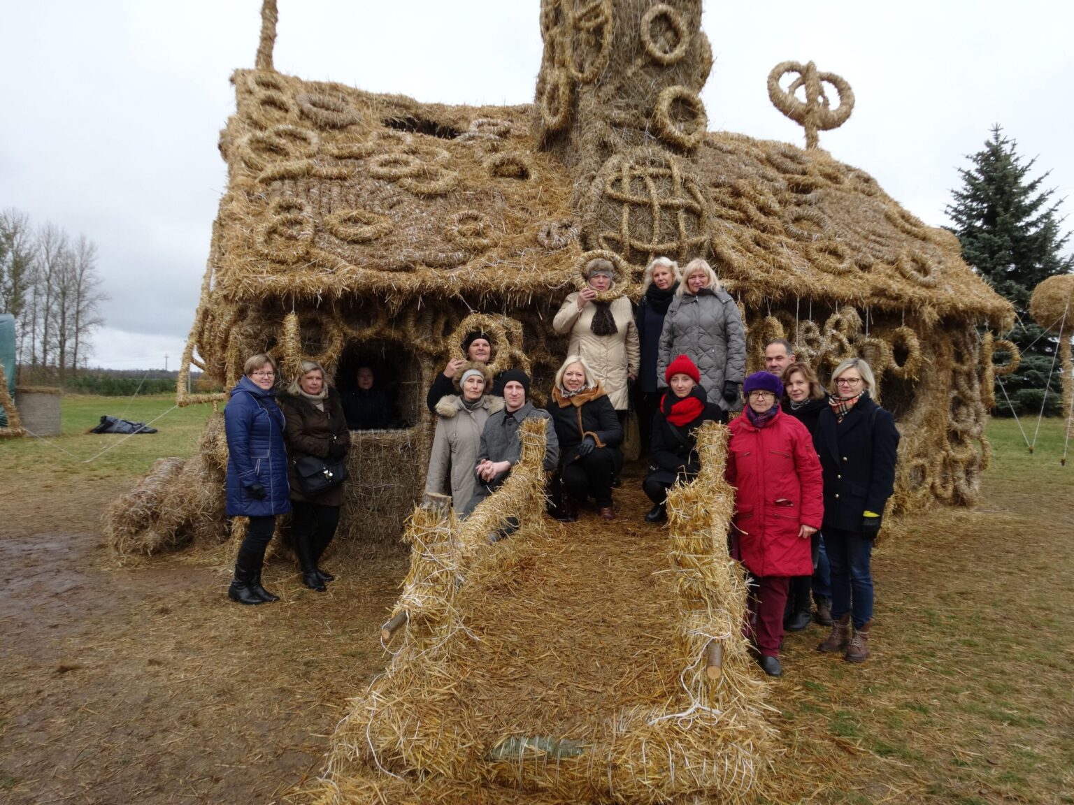 Pakeliui į kapines aplankėme šiaudinę trobelę Naujamiestyje. Apie ją, kaip unikaliausią vietos bendruomenės kūrybinį darbą, papasakojo surdopedagogė Genutė Sutkuvienė. Džiugu, kad namelis ir sodas šį rudenį nebus sudeginti, jais bus galima pasigėrėti ilgesnį laiką.
