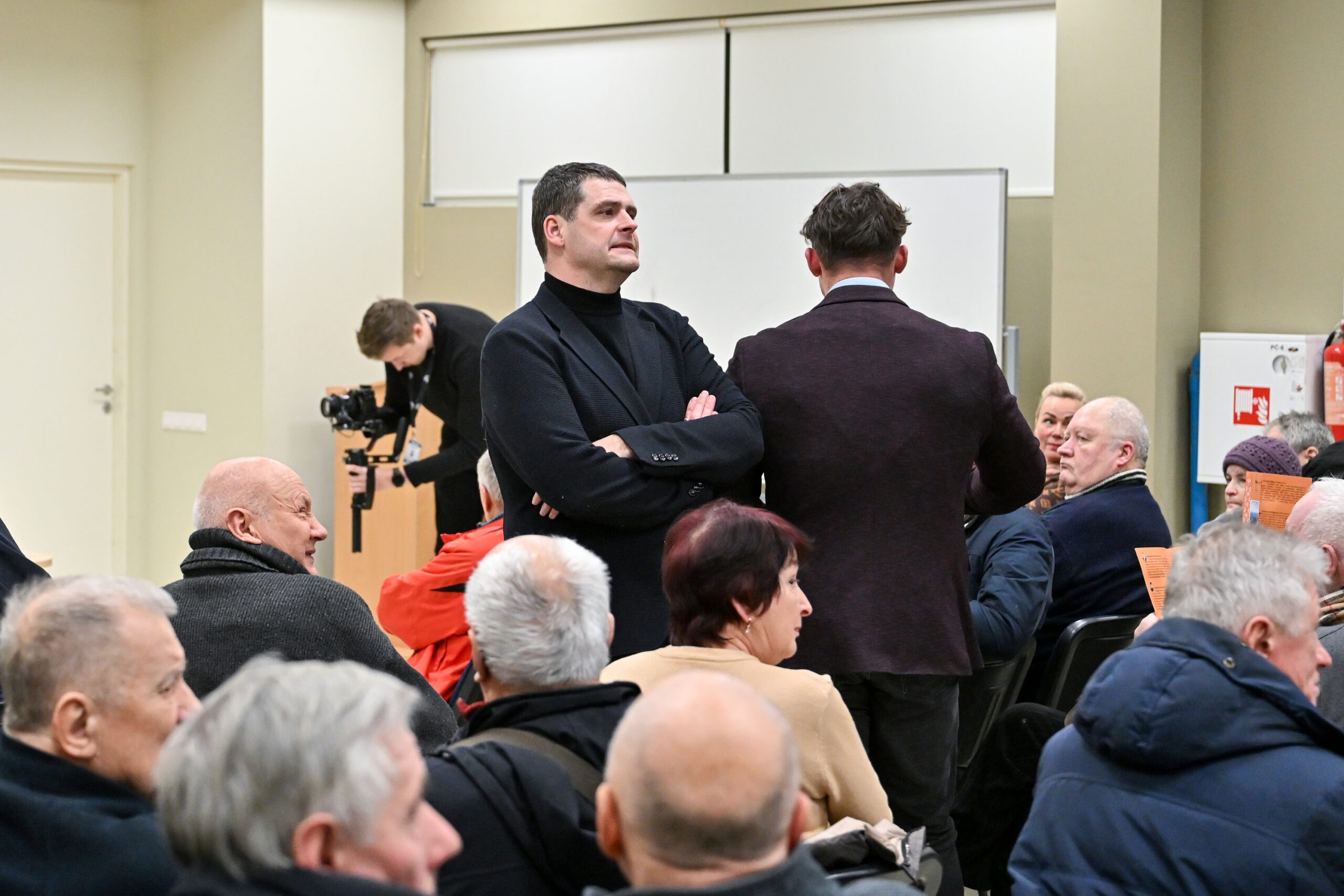 Vėliau susitikimo metu seimūno monologą jo paklausyti susirinkusiems maždaug 200-ams klausytojų netikėtai perskrodė pastate įsijungusi priešgaisrinė signalizacija.