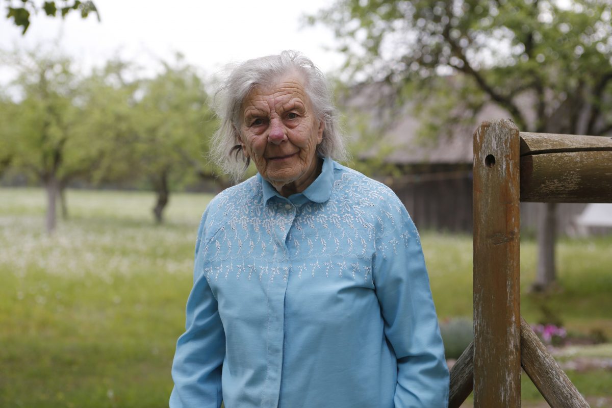 Devintą dešimtį perkopusi Genutė ateina tiesiai iš savo daržo, kur nuo piktžolių baigė vaduoti pirmuosius būsimo derliaus daigelius.