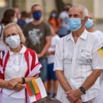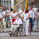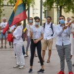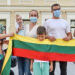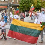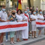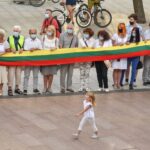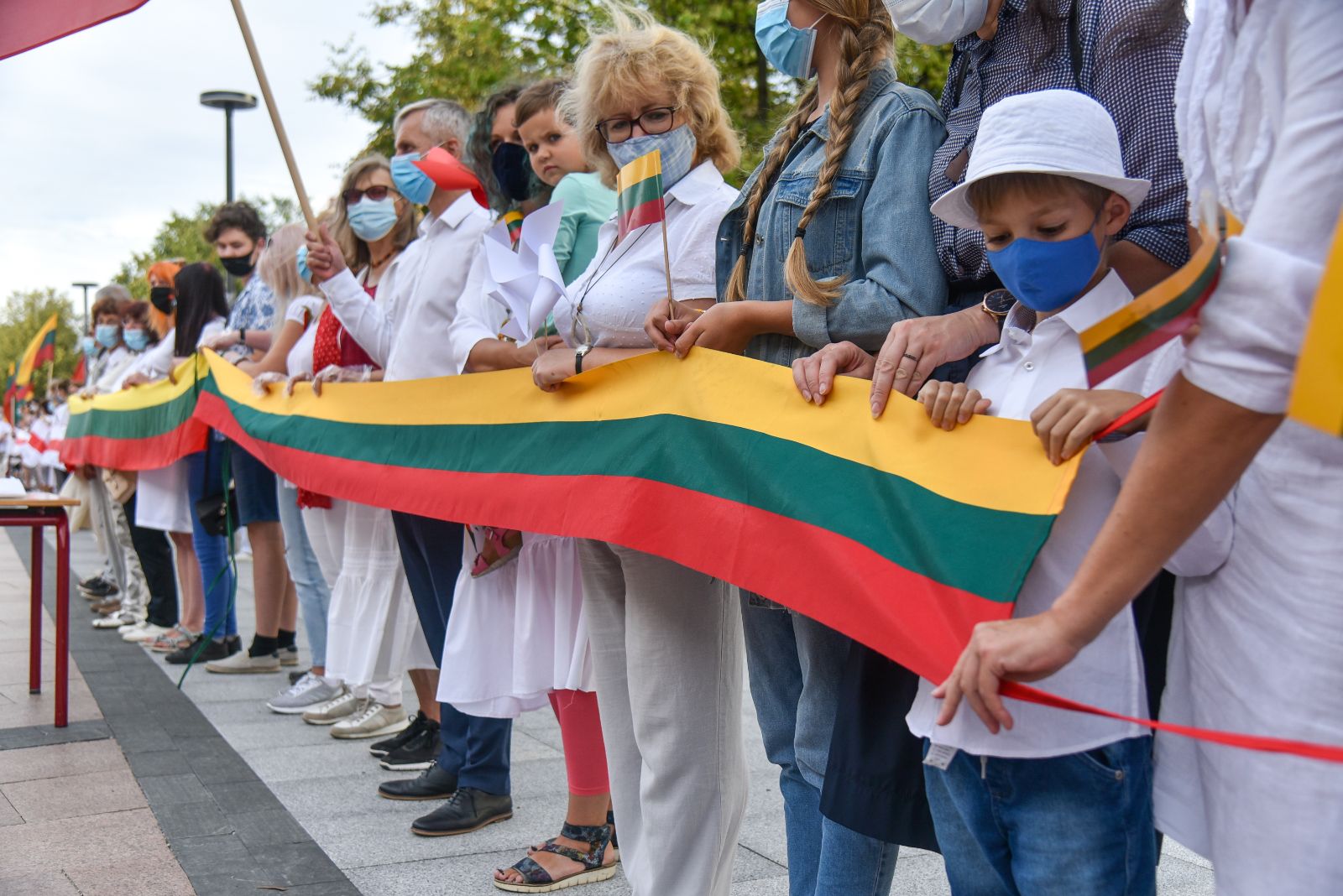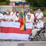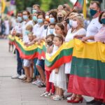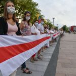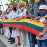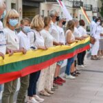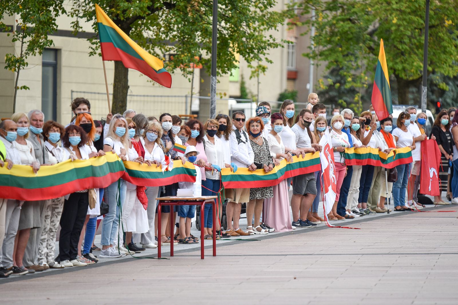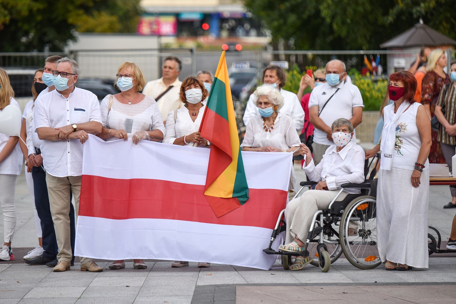 Daugelis apsirengę baltai, jie stojo į „Laisvės kelią“, kad pareikštų palaikymą už demokratines permainas savo šalyje kovojantiems baltarusiams.