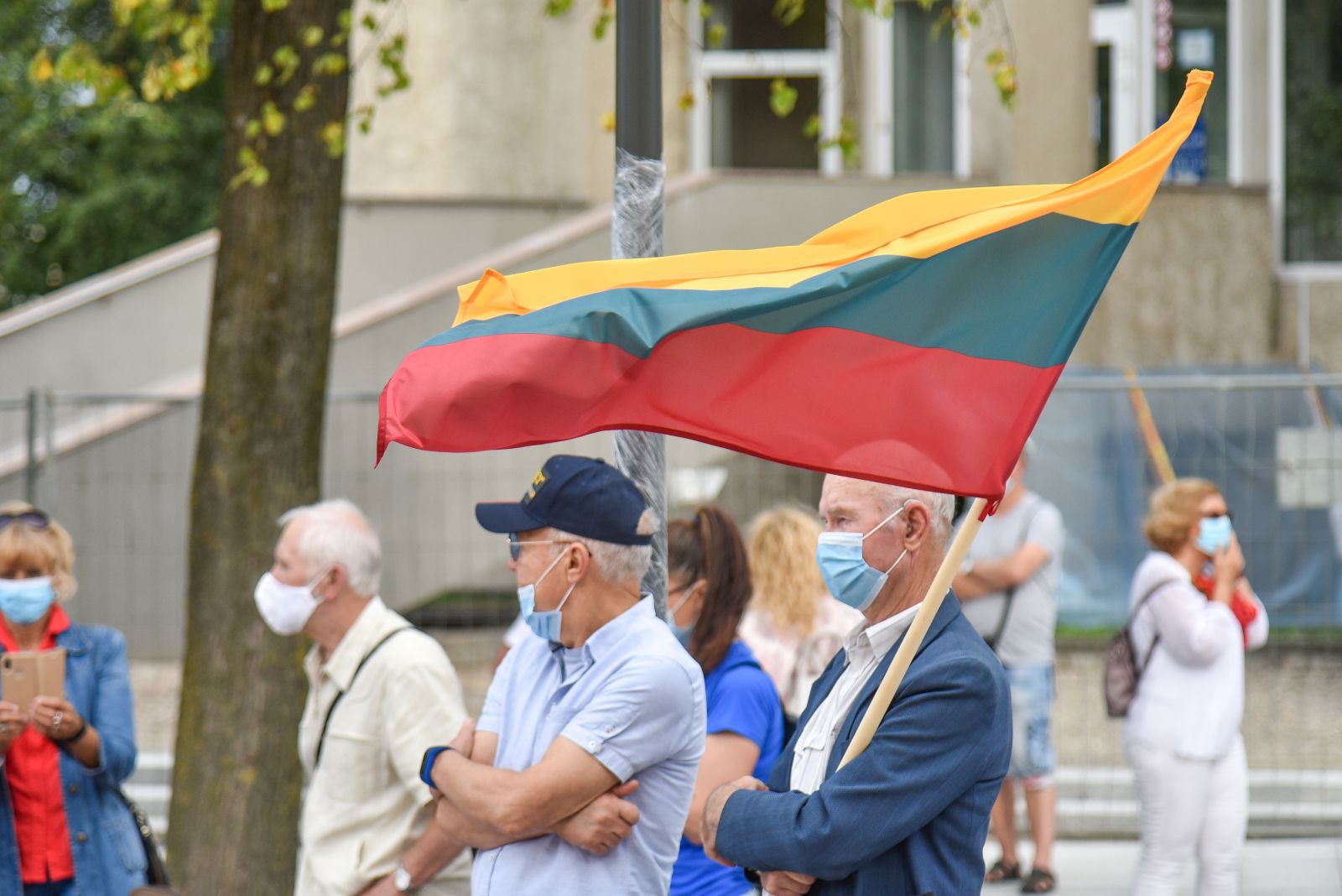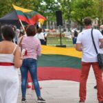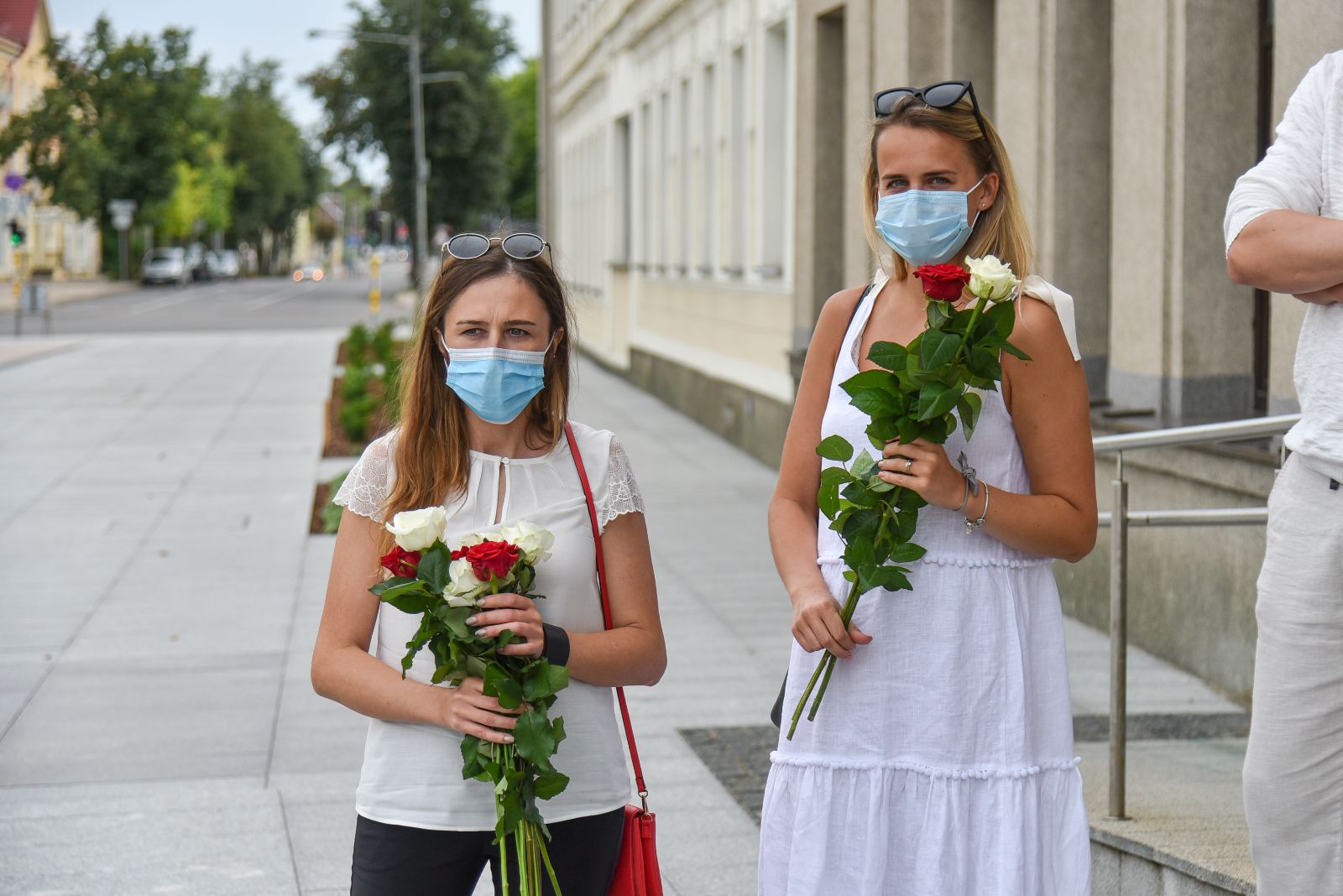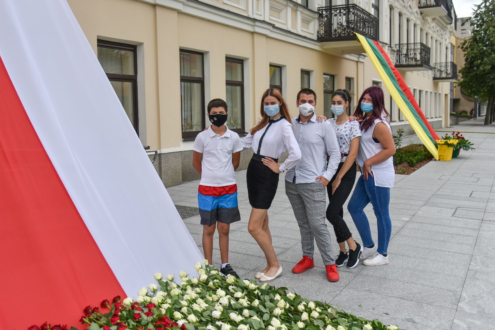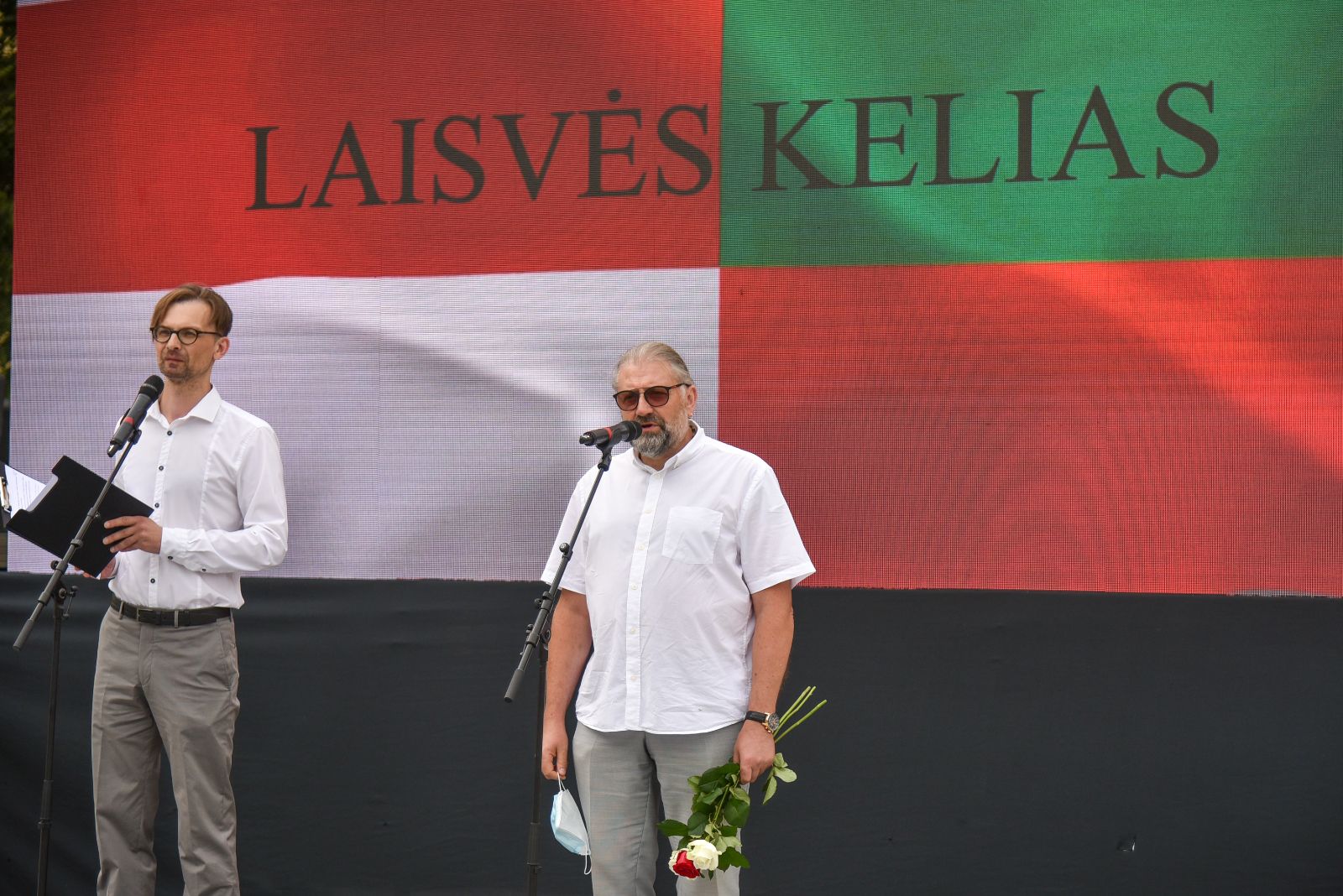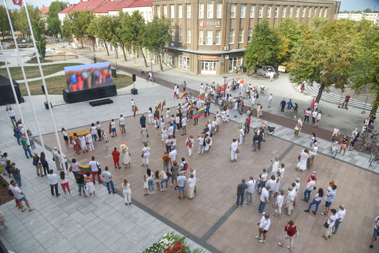 Centrinėje miesto Laisvės aikštėje žmonės rinkosi nešini lietuviškomis trispalvėmis ir tautinėmis Baltarusijos vėliavomis, baltomis ir raudonomis gėlėmis.