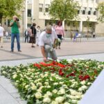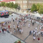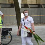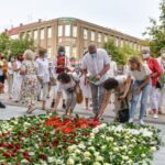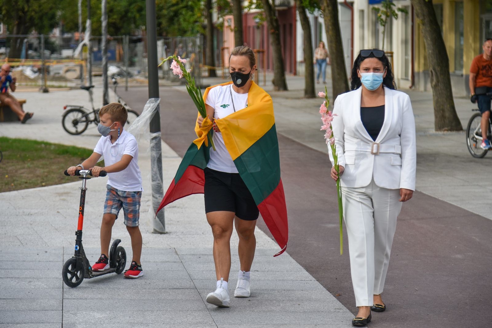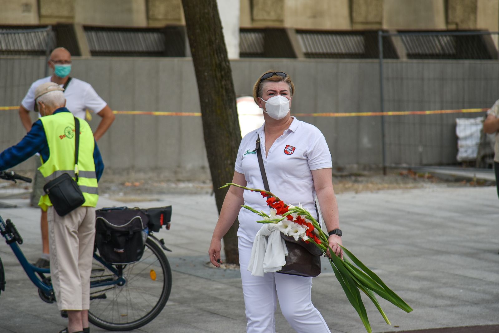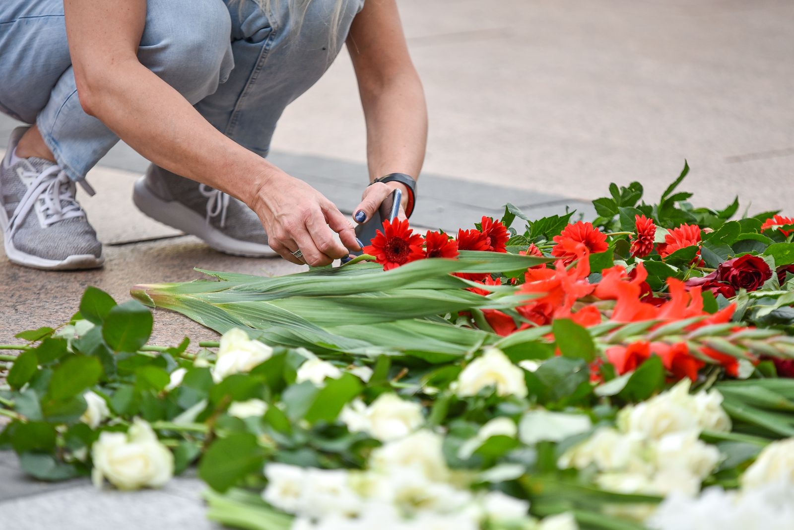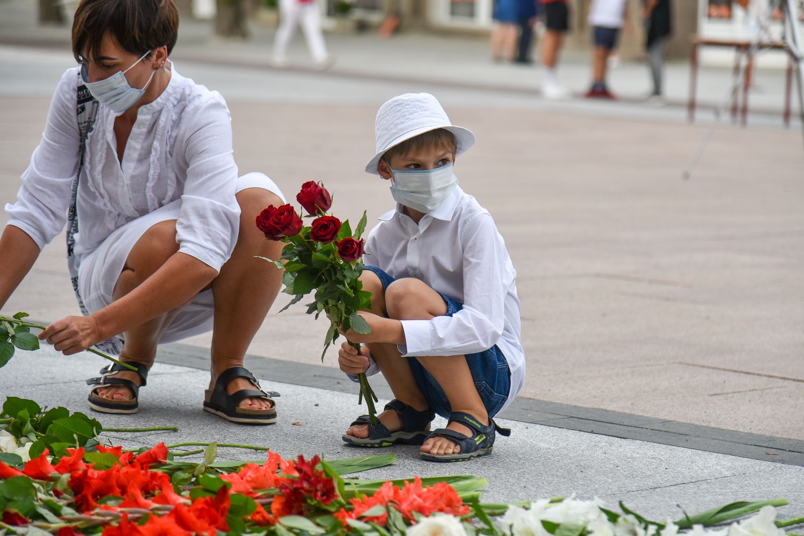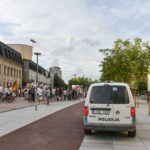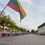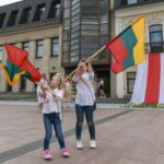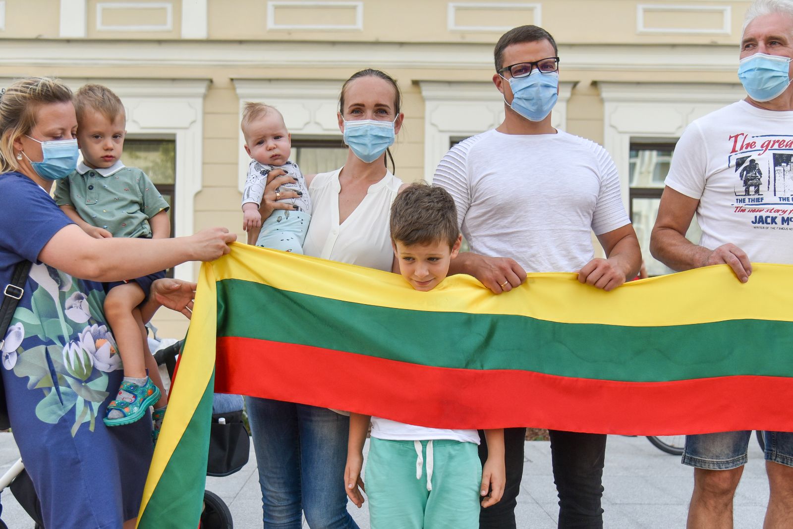 Centrinėje miesto Laisvės aikštėje žmonės rinkosi nešini lietuviškomis trispalvėmis ir tautinėmis Baltarusijos vėliavomis, baltomis ir raudonomis gėlėmis.