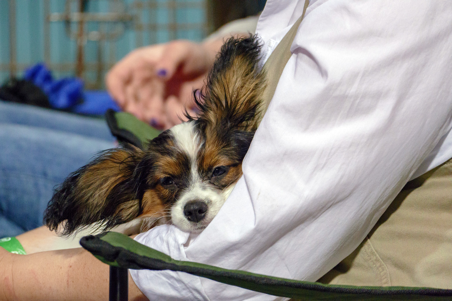 Žavūs pūkų kamuoliukai – Pomeranijos špicai smalsiai stebėjo aplinką sėdėdami savo šeimininkės rankinėje. Kaip pasakojo dviejų žavių špiciukių šeimininkė Dalia Bagočienė, rankinė – jų ramybės ir saugumo uostas. Rankinuke jos gali praleisti net kelias valandas.
