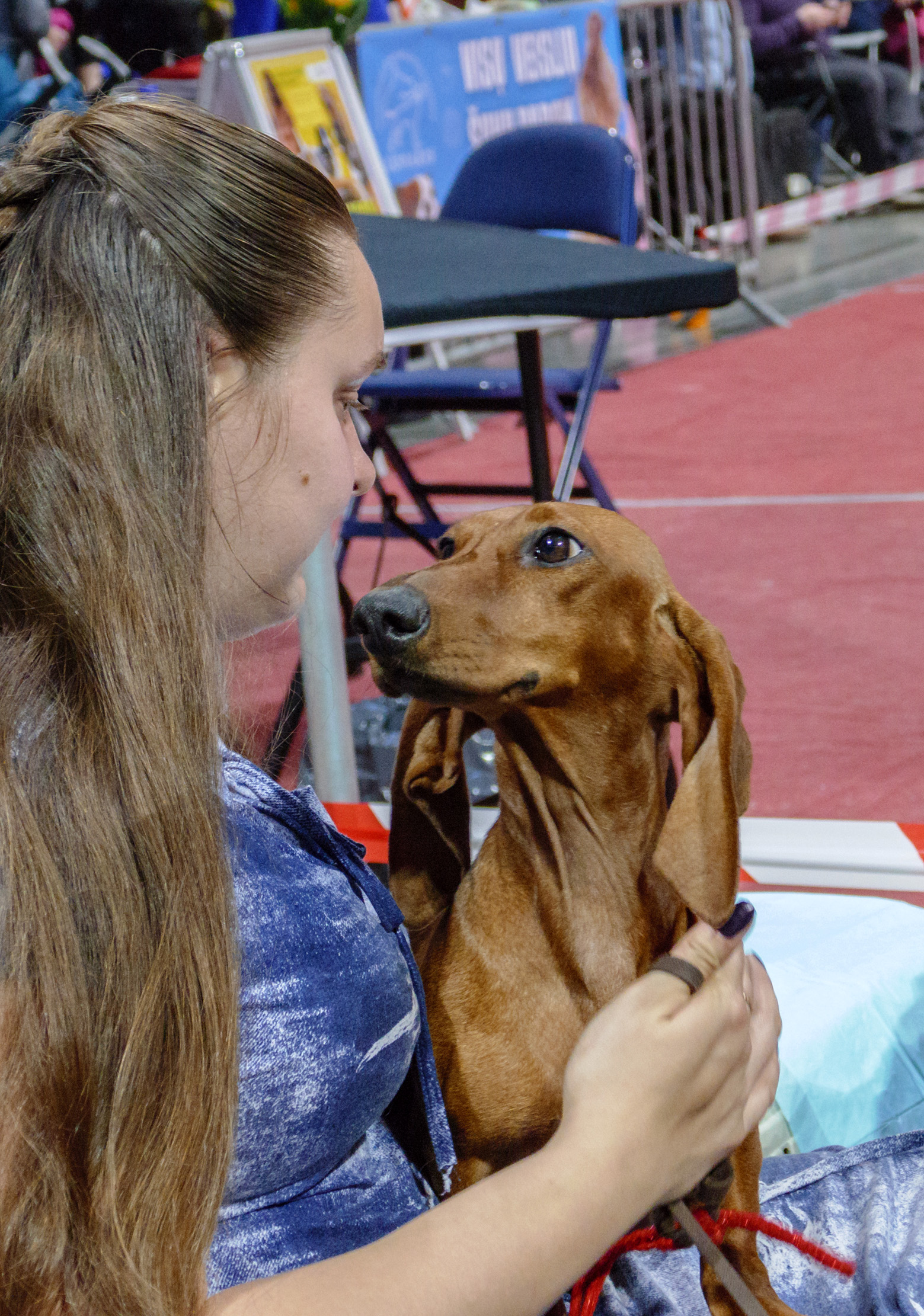 Parodos nepraleido ir garsi televizijos ir radijo laidų vedėja Skaiva Jasevičiūtė-Kraujalė. Žinoma moteris šįkart į parodą atsivežė du savo augintinius – vos pusės metų sulaukusį triušinį trumpaplaukį taksą Ego, visai neseniai atkeliavusį iš Kroatijos bei nykštukinį trumpaplaukį taksą Leonelį.