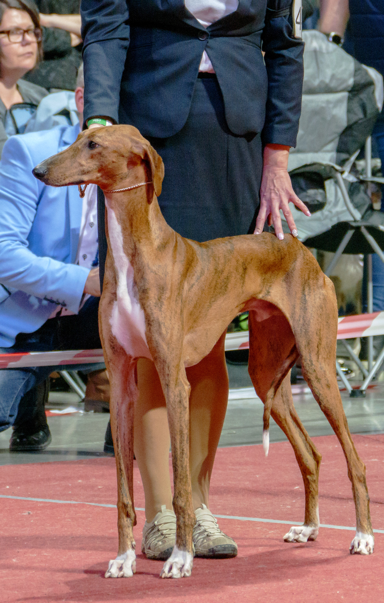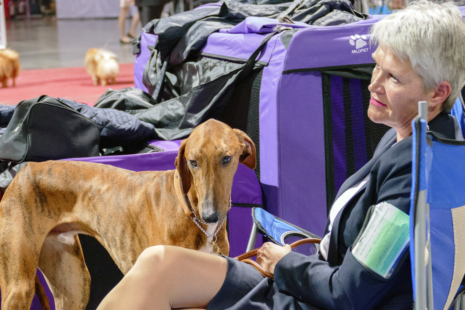 Tarp gausybės įvairiausių veislių keturkojų dėmesį patraukė grakštus ir elegantiškas šuo tigriniu kailiu. Kaip sakė šio gražuolio savininkė panevėžietė Aušra Bartoševičienė, tai greihaundų veislės kalytė Elza. Lietuvoje šiuos šunis augina iki dešimties gyvūnų mylėtojų. Pasak Aušros, tai gana didelis šuo, tad ne visi turi galimybes jį laikyti namuose. Be to, nemažai atsieina ir jo išlaikymas.