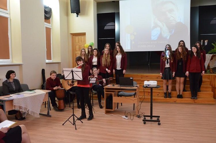 Į Panevėžio Kazimiero Paltaroko gimnaziją sukvietėme miesto maironiečius ir jų vadoves. Atvyko Vytauto Žemkalnio gimnazijos (vadovė S. Motiejūnienė), „Vilties“ pagrindinės mokyklos (vadovė V. Masiulienė) ir „Žemynos“ progimnazijos (vadovė L. Putauskienė) maironiečiai.