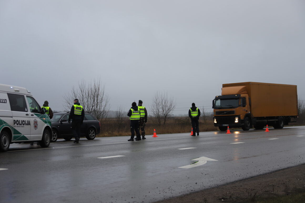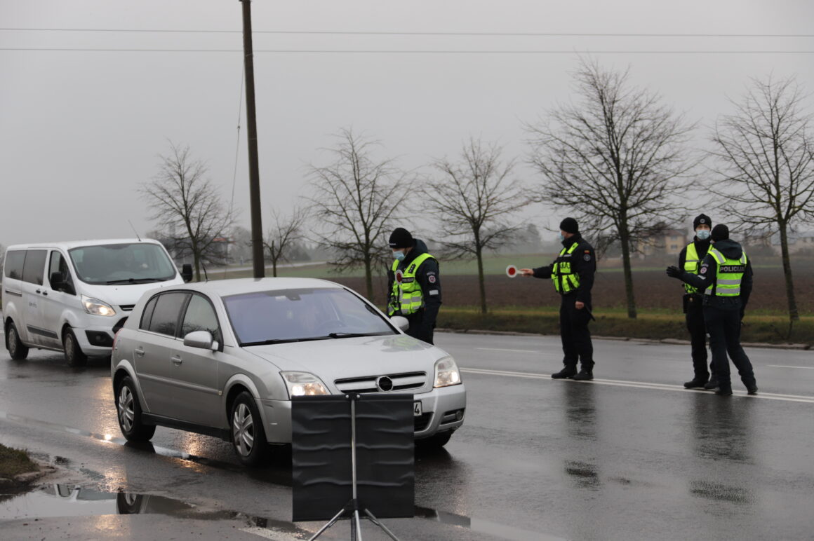 Užtikrinant judėjimo ribojimą tarp savivaldybių šalyje dirba apie 900 policijos ekipažų, jiems talkina šauliai, pasieniečiai, karo policija.