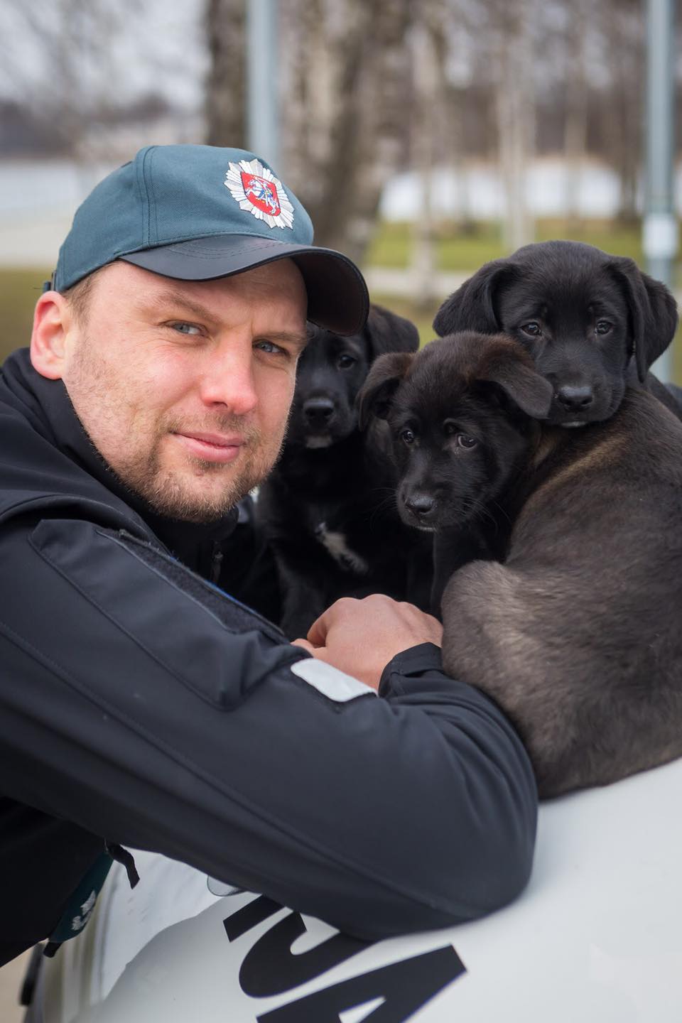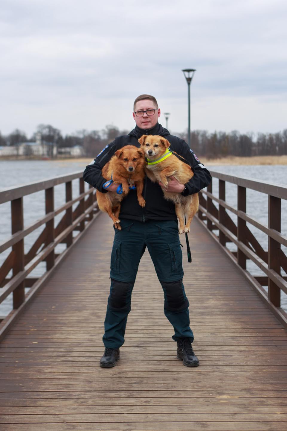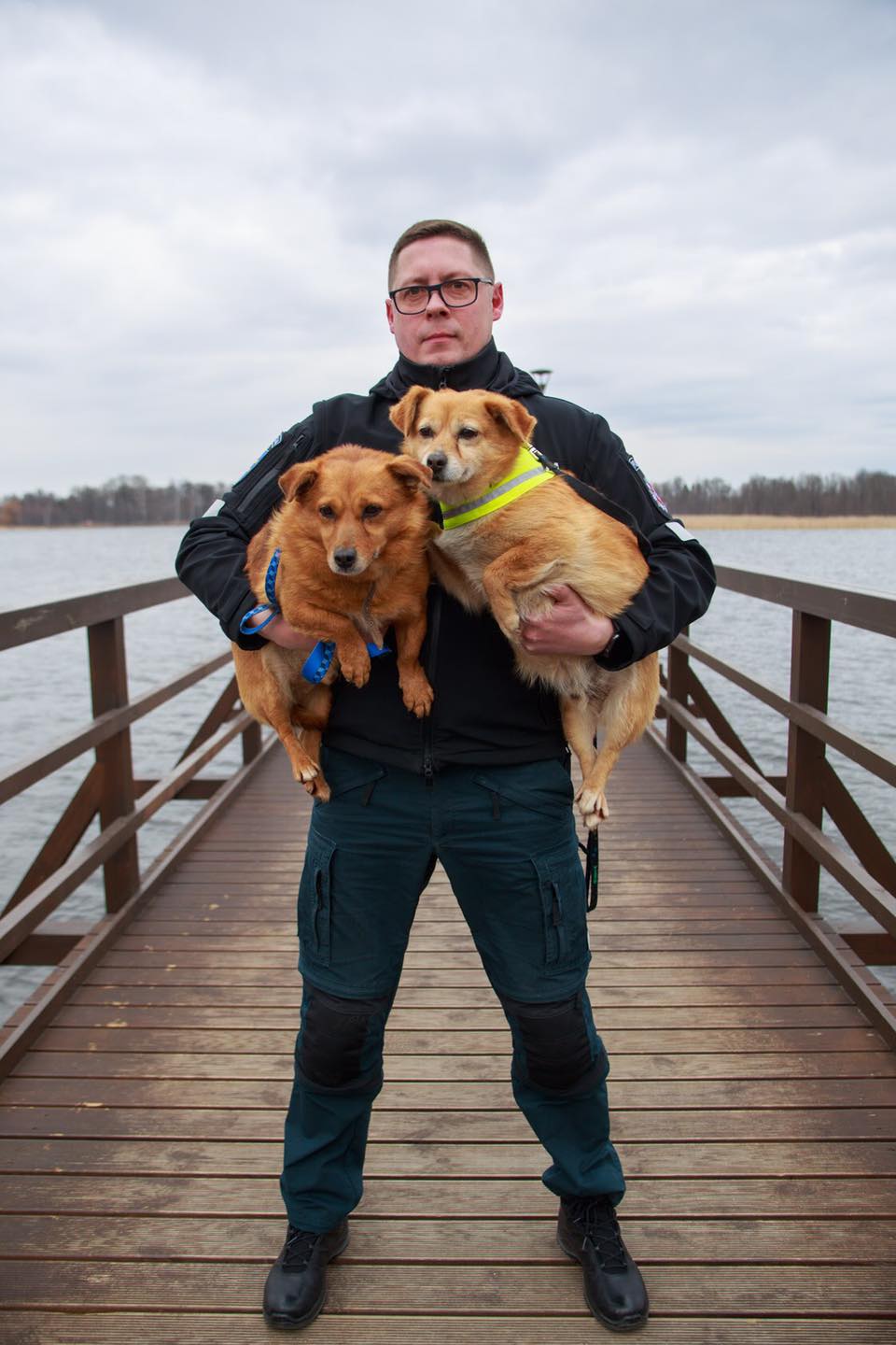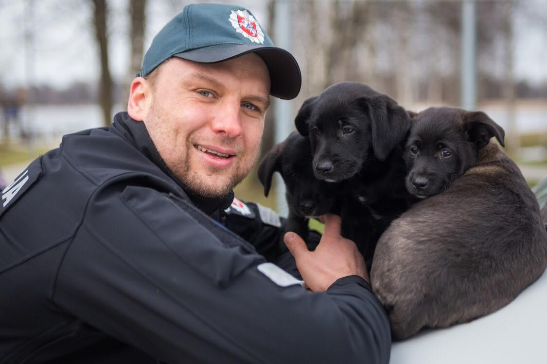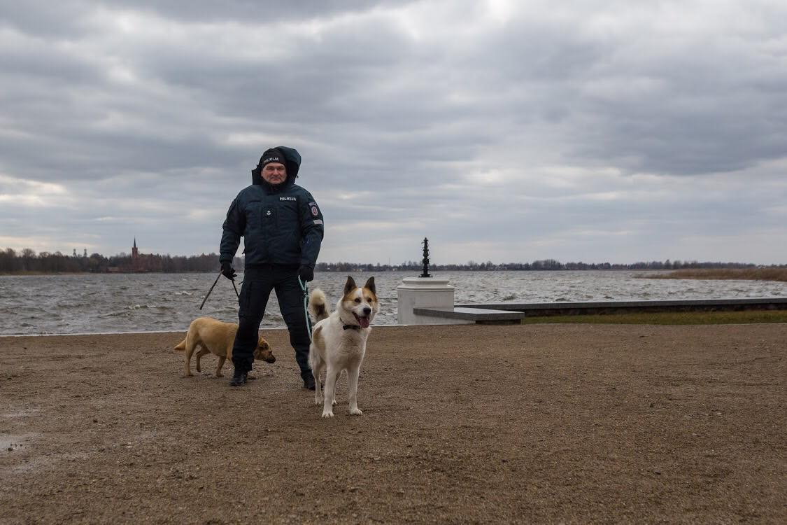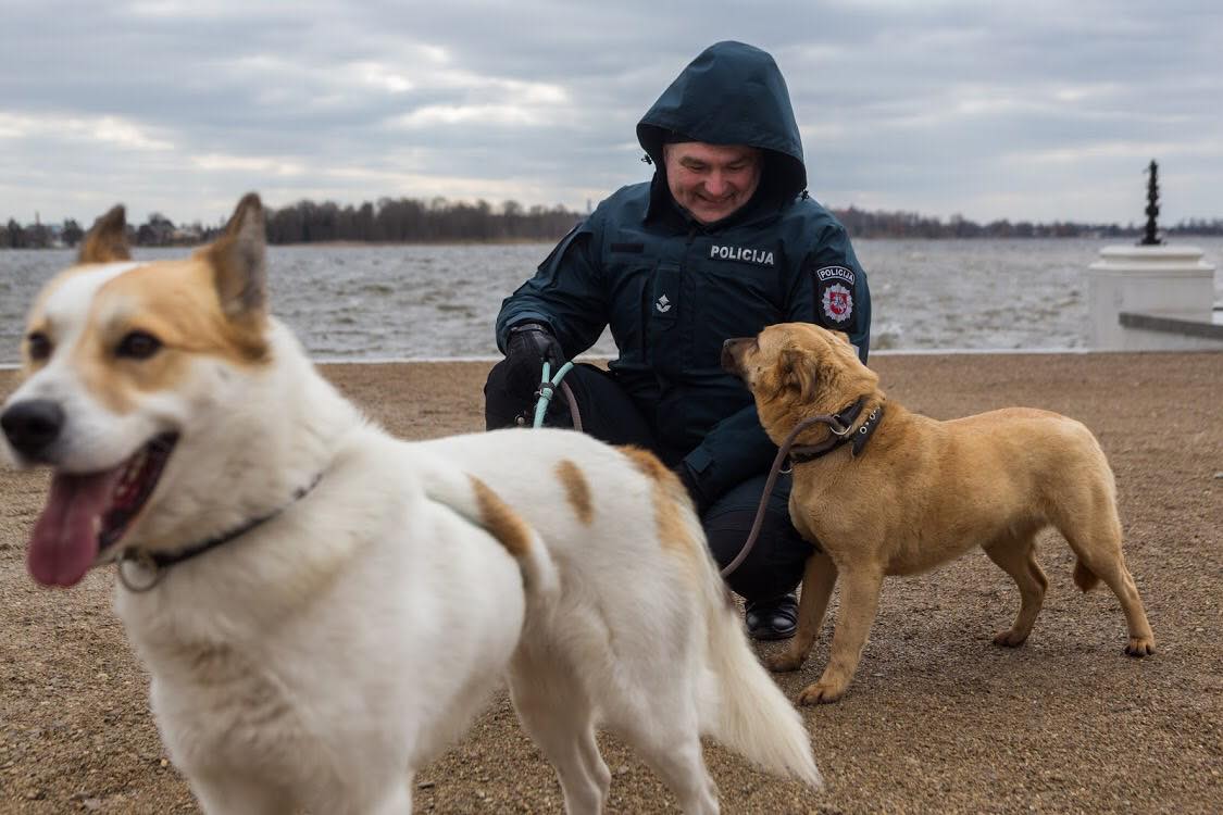 Beglobiai šunys – policijos pareigūnų glėbyje. Tokią fotosesiją surengusi gyvūnų prieglauda „Mažas draugas“ ir fotografas Audrius Vizbaras sulaukė didžiulio palaikymo socialiniuose tinkluose.